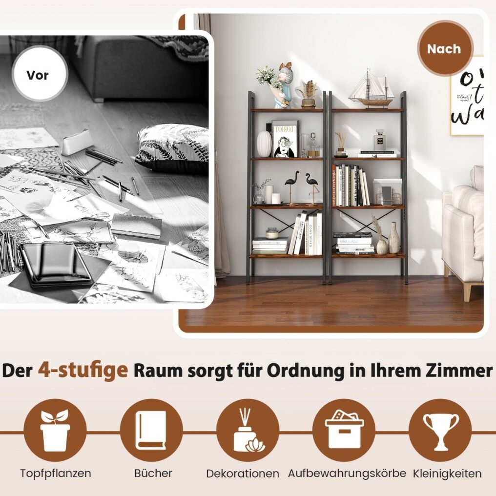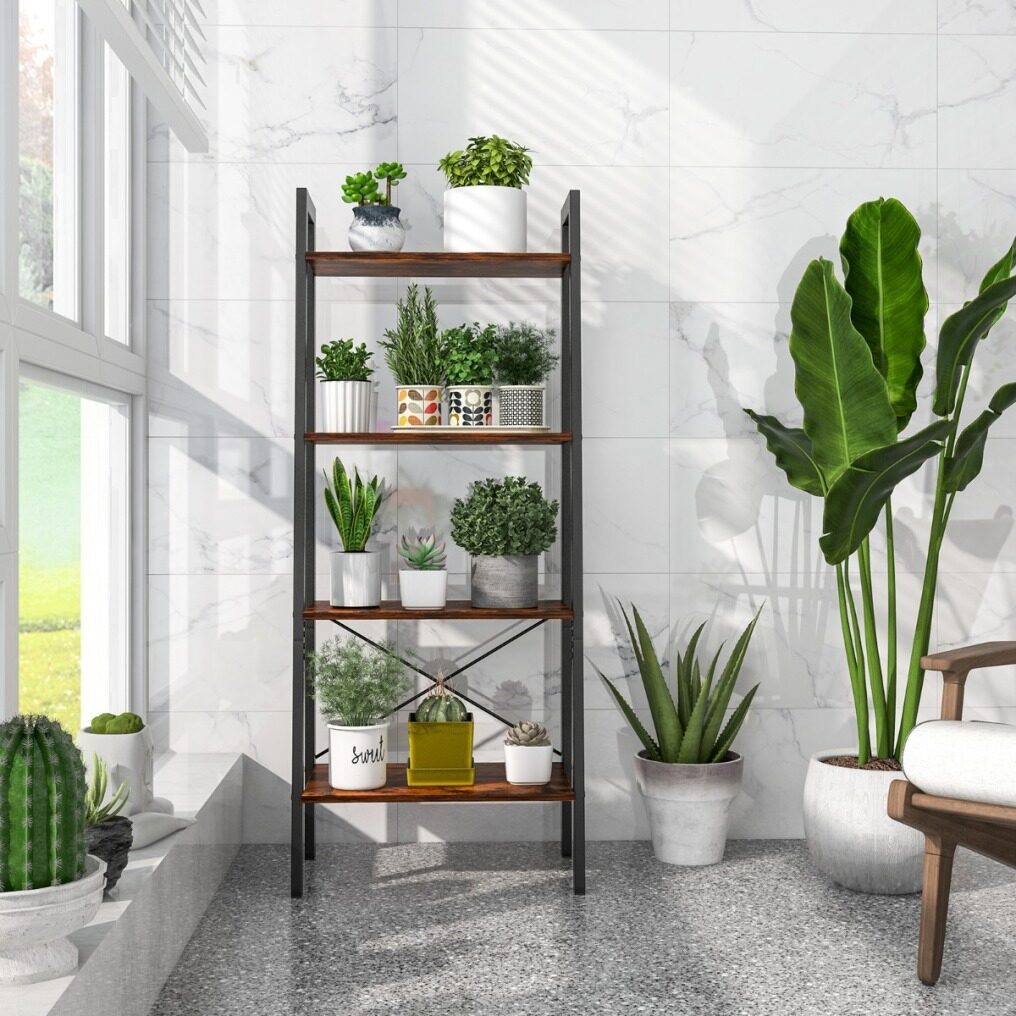 ● 4-Tier Storage and Industrial Style: Fully utilizing 4 wide shelves, you will get ample sorted space to store plenty of items, like books, kitchenware, plants, etc. By the way, since the bookshelf cleverly combines an industrial design, it can also work as a decoration in your home or office.