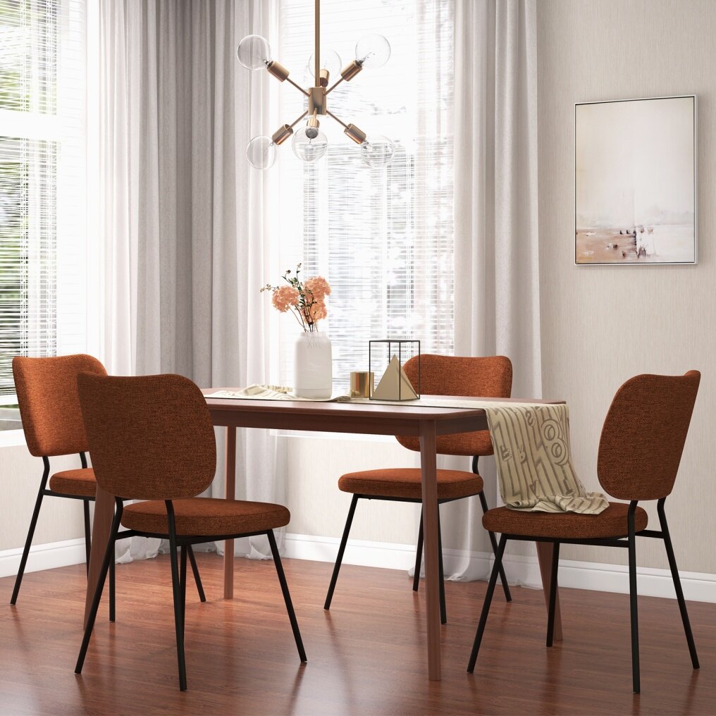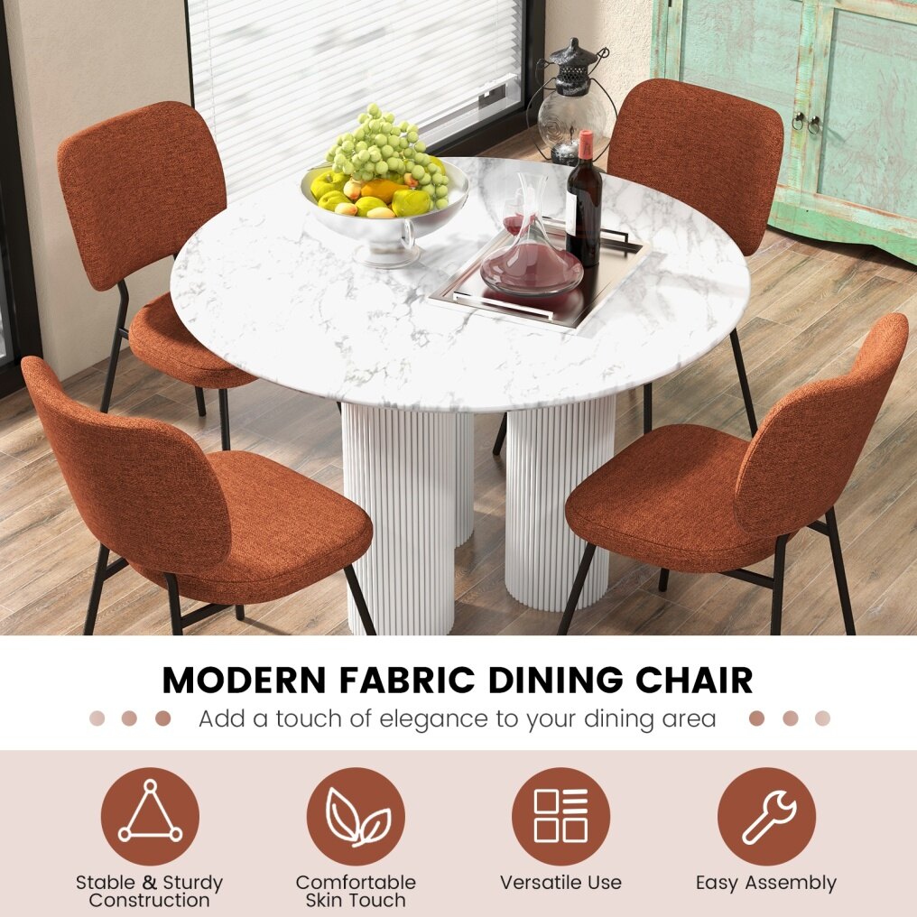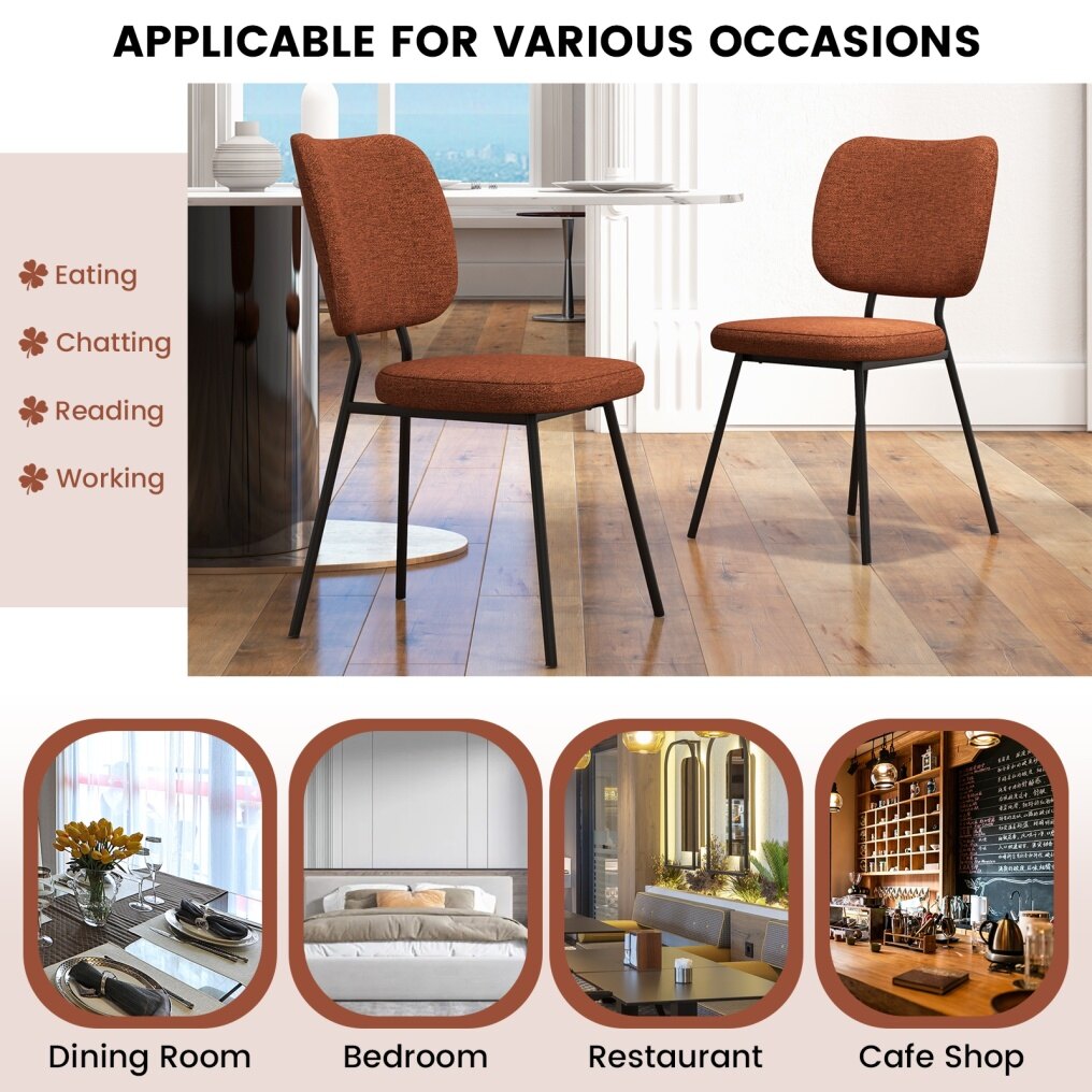● Simple and Elegant Appearance: With the stunning combination of a matte black metal frame and textured linen fabric, the modern fabric dining chairs can be easily blended into any decor style. It can be used as a dining chair, kitchen chair, desk chair, or café chair, satisfying different needs.