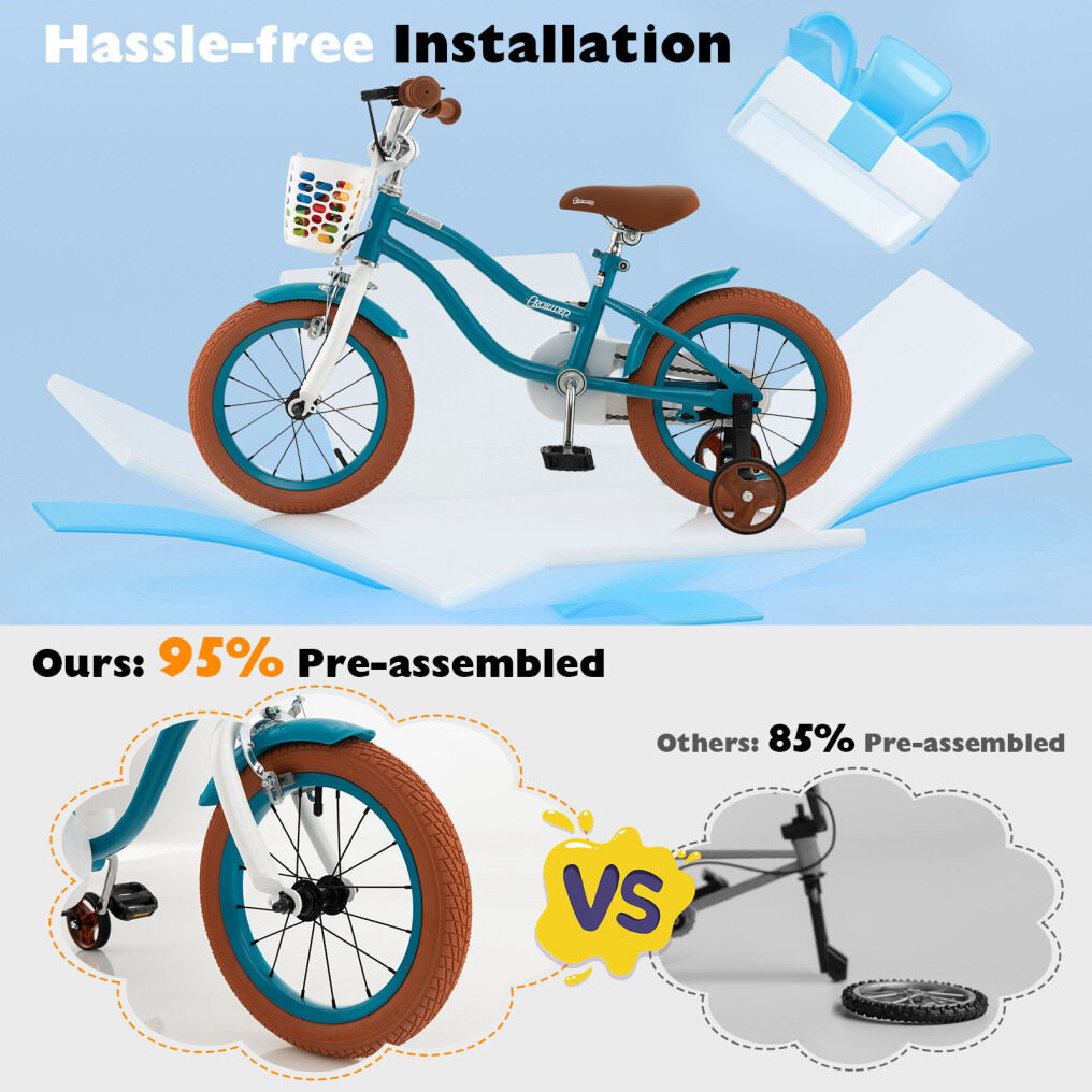 ● 95% Pre-assembled and Optional Size: Different from other 85% pre-assembled bikes, this bike with 95% pre-assembled design ensures quick and hassle-free installation. You can easily finish the installation with your little ones. Plus, we provide multiple size options.