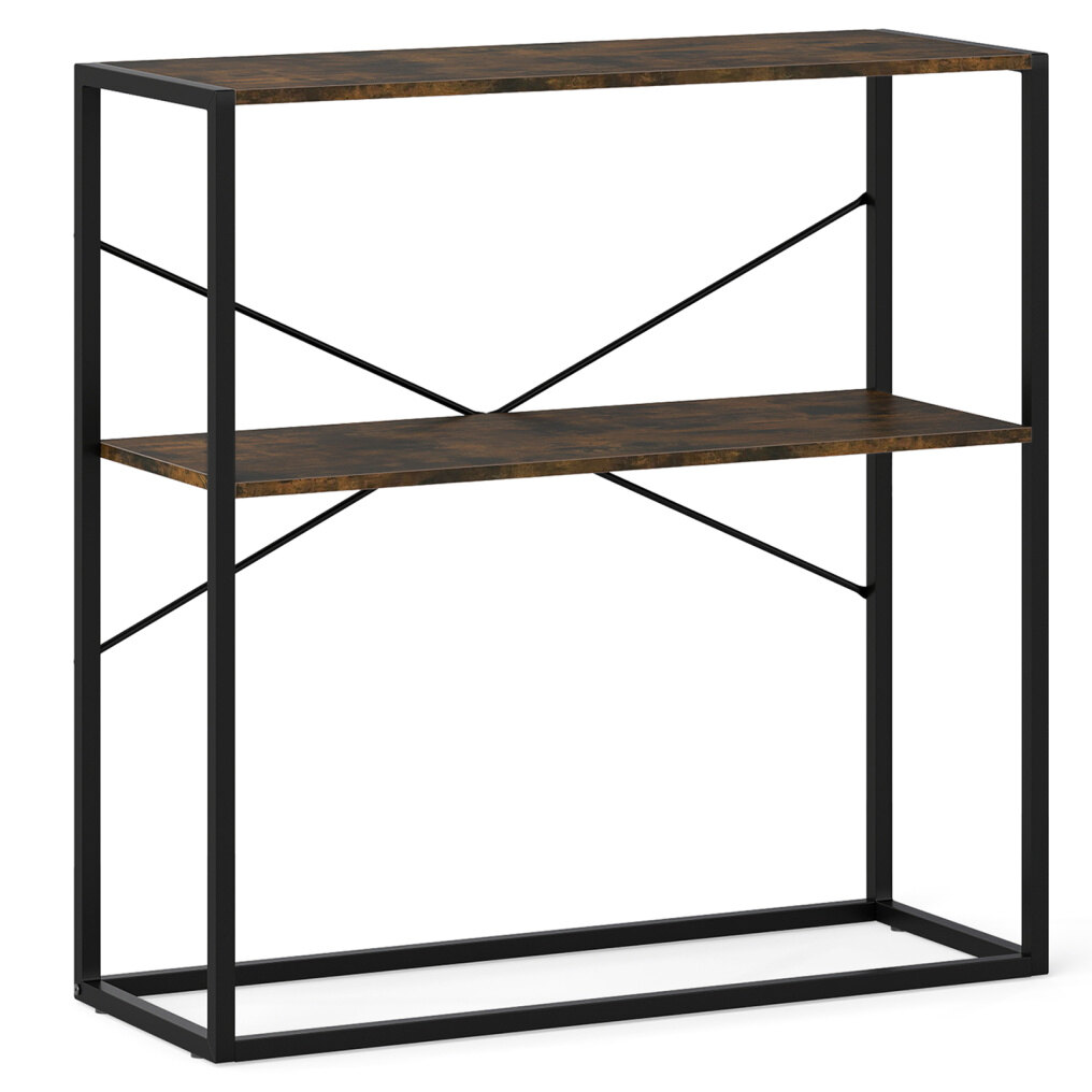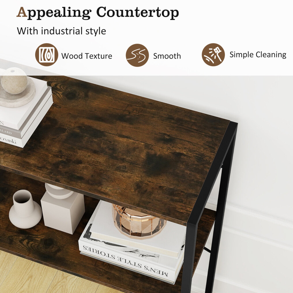 36" Console Table 2-Tier Entryway Table with Wooden Open Shelves and Metal Frame-Rustic Brown
