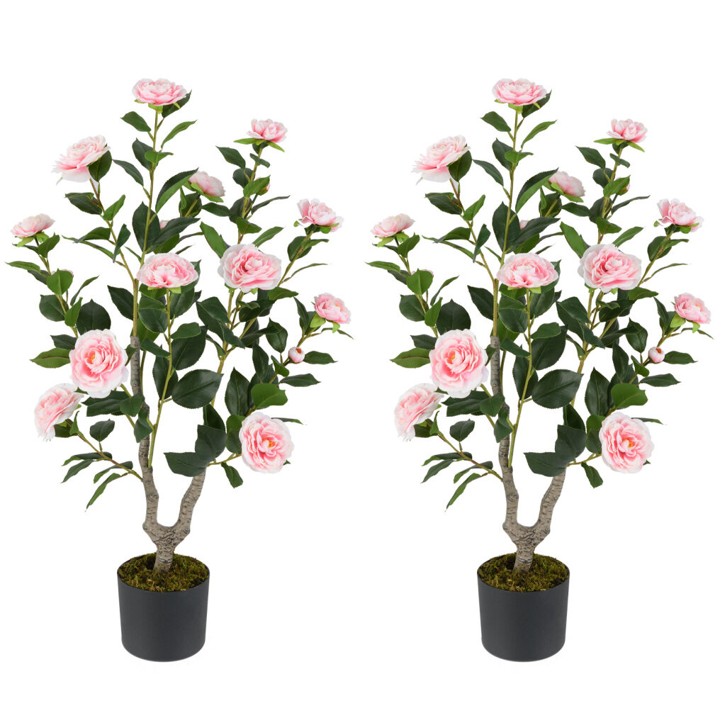 36 Inch Artificial Camellia Tree with Blooming Flower 2 Pack-Pink