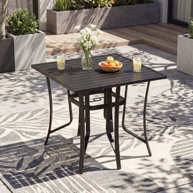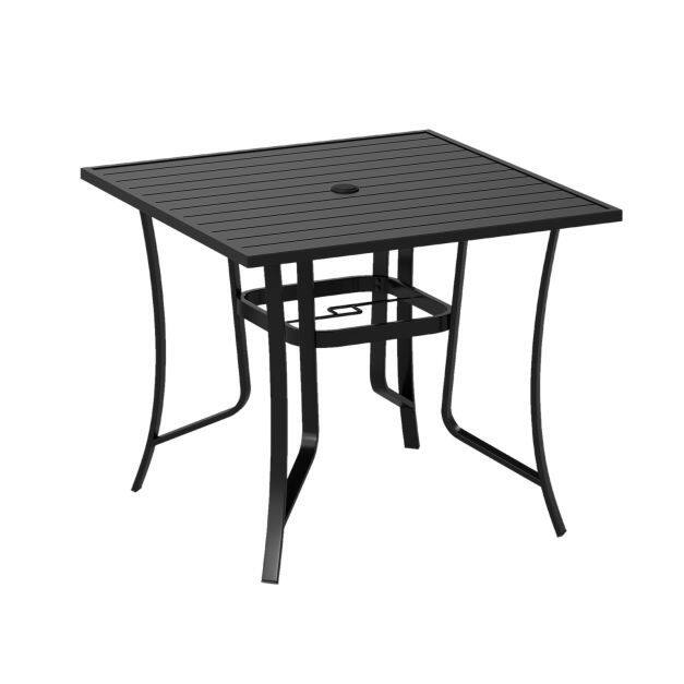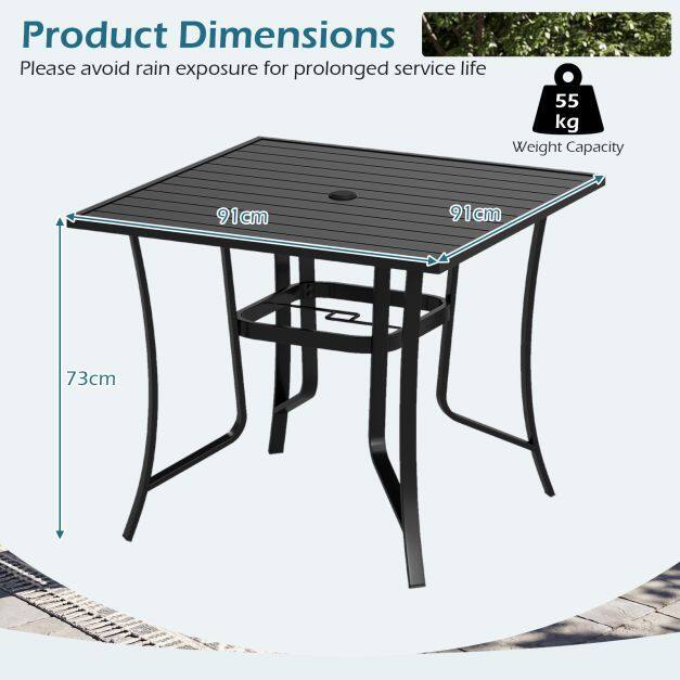 ● Sturdy Metal Construction: This outside dinner table features a robust metal frame, ensuring stable and reliable performance for daily use. Moreover, the reinforced crossbars and anti-slip foot pads allow for additional stability.