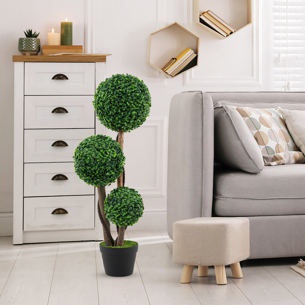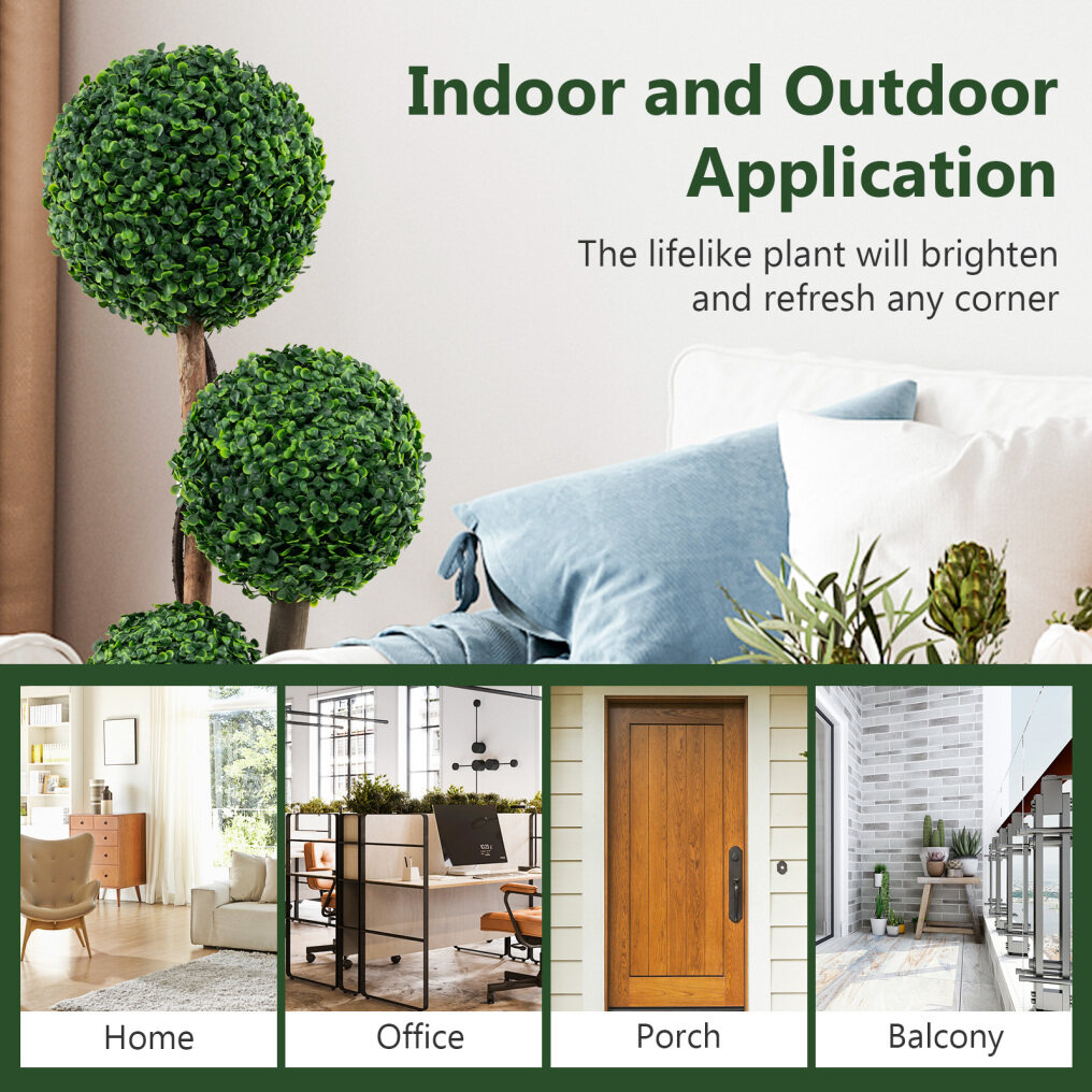 ● Vivid and Full-Bodied Appearance: This 36" artificial boxwood topiary tree boasts 3 boxwood topiary balls with dense leaves, creating a realistic and eye-catching display. Moreover, it features natural wood trunks and simulated rattans to further enhance its aesthetic appeal.