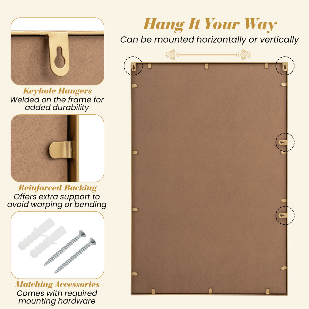 ● High-Definition Mirror: This gold framed mirror provides clear, distortion-free reflection to brighten and visually expand your space. It helps you check your appearance or reflect light throughout the room, making it both a functional and stylish addition to any wall in your home.