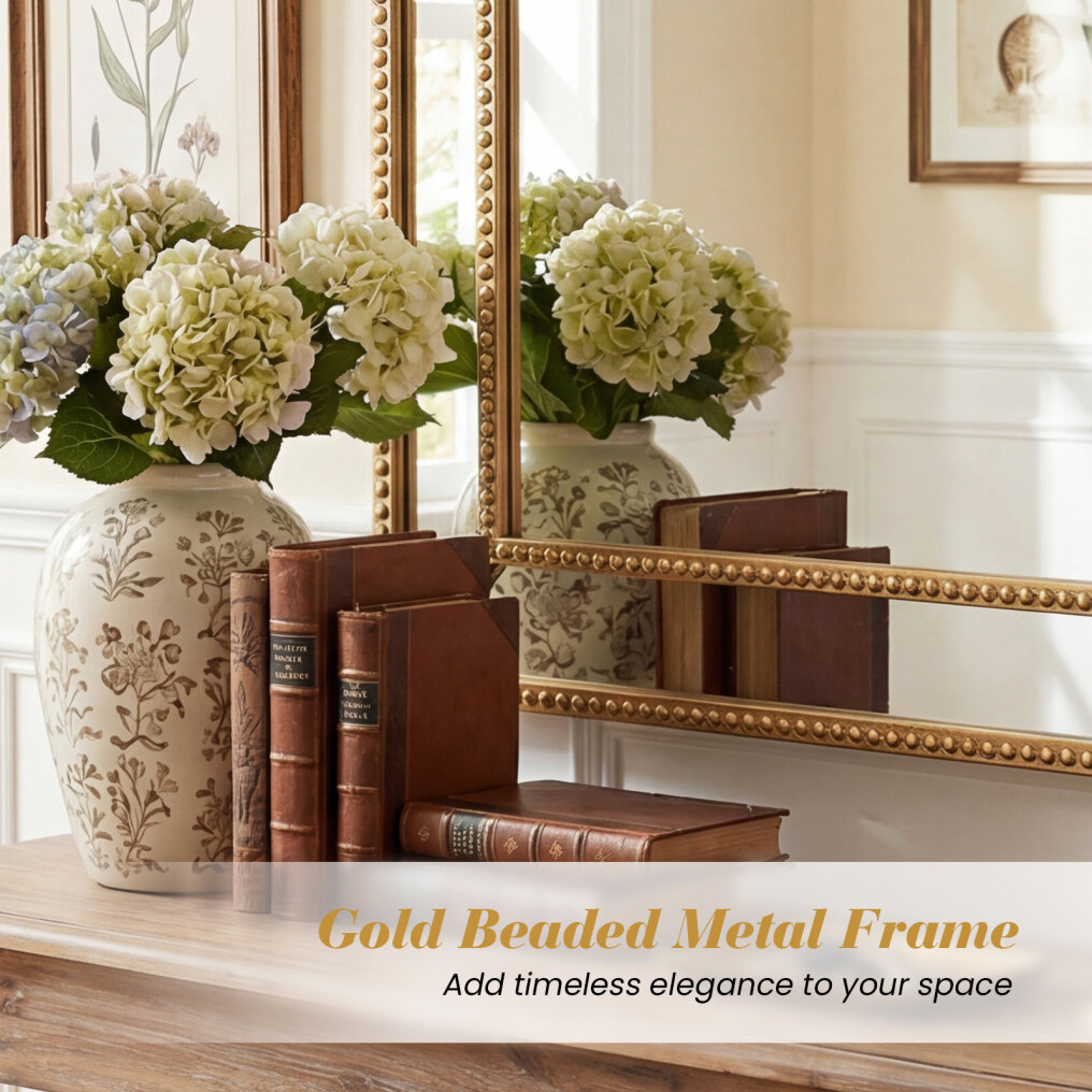 ● Elegant Beaded Design: The gold beaded metal frame instantly elevates your room with its sophisticated design, adding a touch of glamour. This decorative mirror is the perfect statement piece for living rooms, bedrooms, hallways, fireplaces, or entryways, effortlessly enhancing your existing decoration.