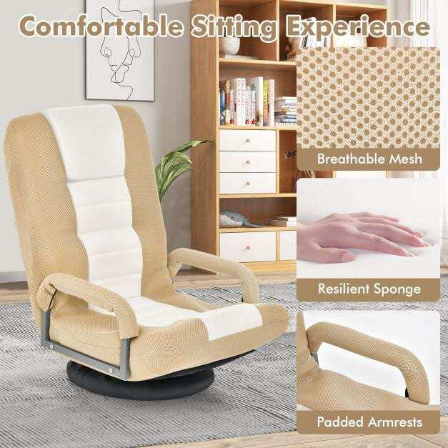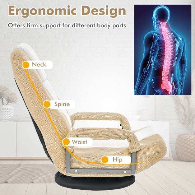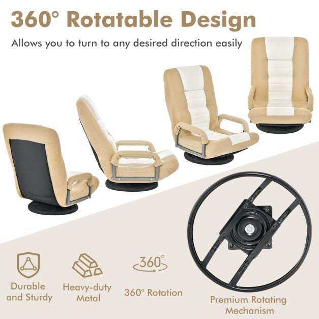 6 Positions Adjustable & 360° Swivel: The floor chair is equipped with a 6-position adjustable backrest to meet individual needs. Adjust the backrest to the desired angle with ease by just applying pressure. The 360° rotating base brings more comfort.