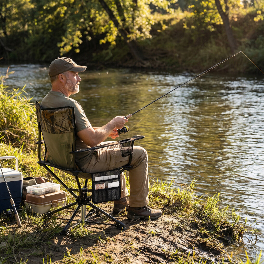● Foldable & Portable Design: You can press or step down to unlock and fold the outdoor chair into a narrow shape of 10" x 10" x 43.5"/25 x 25 x 110 cm (L x W x H). Then, the folded chair can be stored in the carrying bag. You can take the chair for camping, fishing, hiking, or hunting.