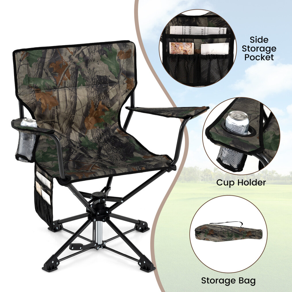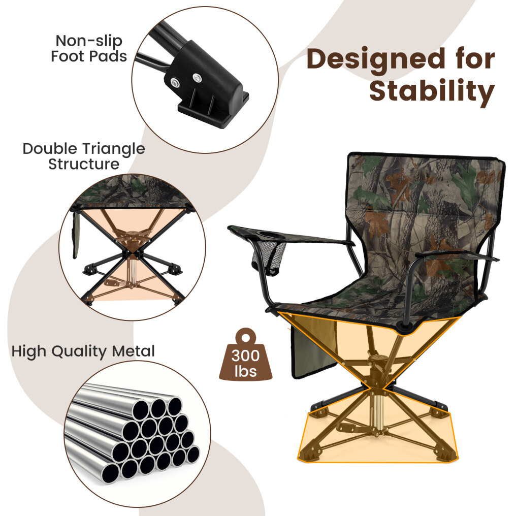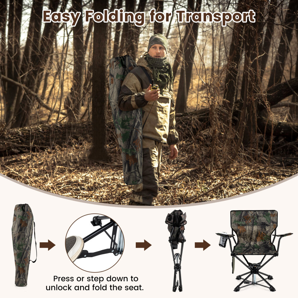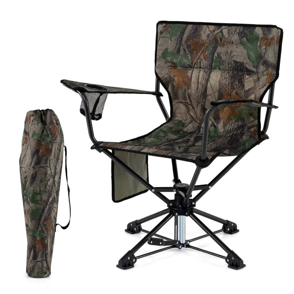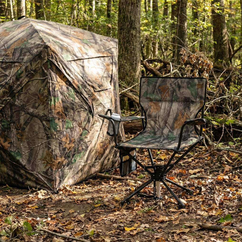 ● Storage Pockets & Cup Holder: Unlike other hunting chairs, our swivel hunting chair features side pockets to store your small items and keep them within reach. The cup holder also offers you a place to put your beverages, bringing you much convenience.