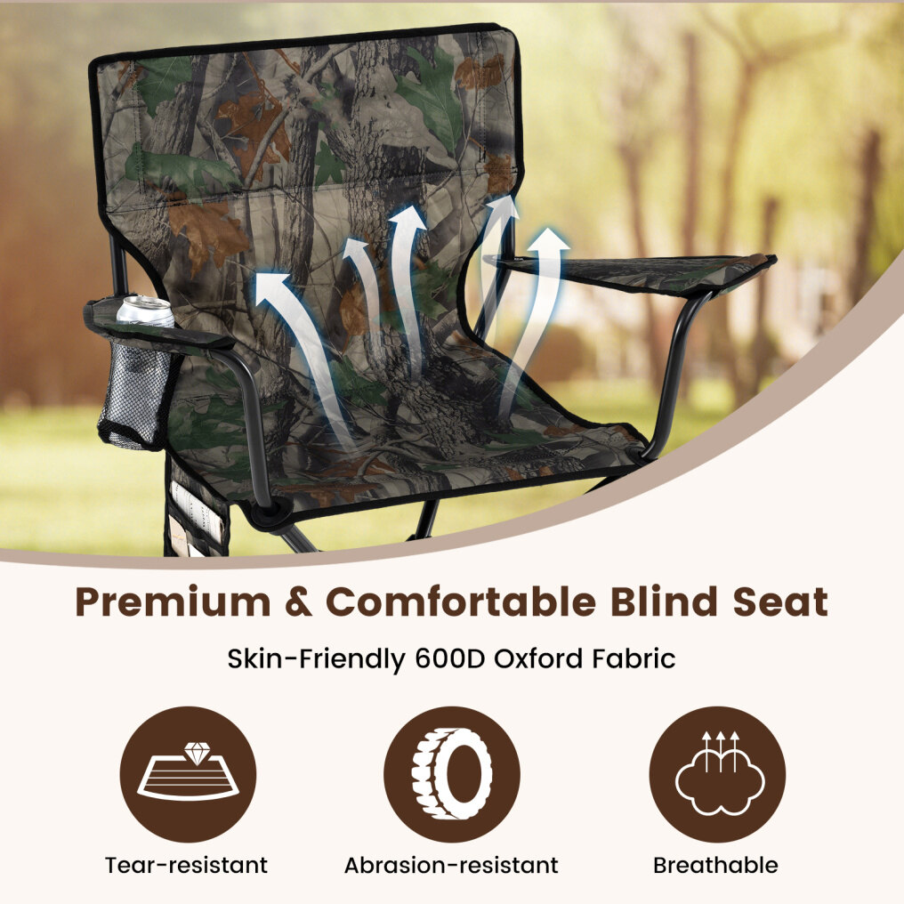 ● Upgraded Stable Structure: Supported by 4 solid metal legs, this hunting chair ensures excellent strength and sturdiness, making it not easy to wobble or collapse. The chair supports up to 300 lbs/136 kg. Additionally, the anti-slip foot pads enhance steadiness.