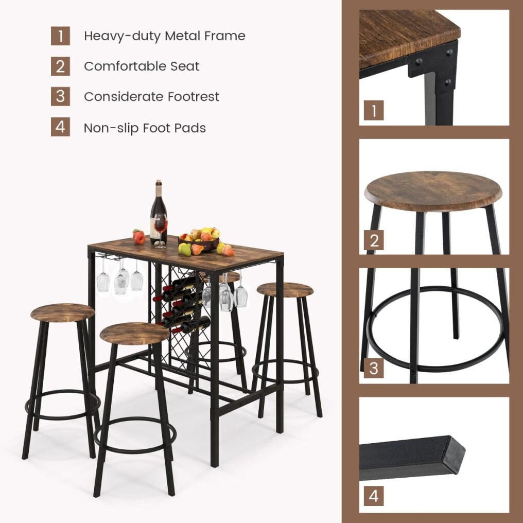● Industrial 5 Pieces Bar Table Set: The bar set includes 1 table and 4 stools, which can accommodate 4 people to gather for a drink, afternoon tea or casual meal. Its industrial style and rustic wood grain add aesthetic beauty to various places, such as home, restaurant, coffee shop and bar.