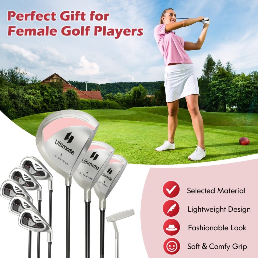 ● Complete Golf Club Set for Women: This 9-piece golf club set includes 1# driver with head cover, 3# fairway with head cover, 4# hybrid with head cover, 6# iron, 7# iron, 8# iron, 9# iron, P# iron and putter. It is specially designed for right-handed female golfers. Note: the golf bag is not included.
