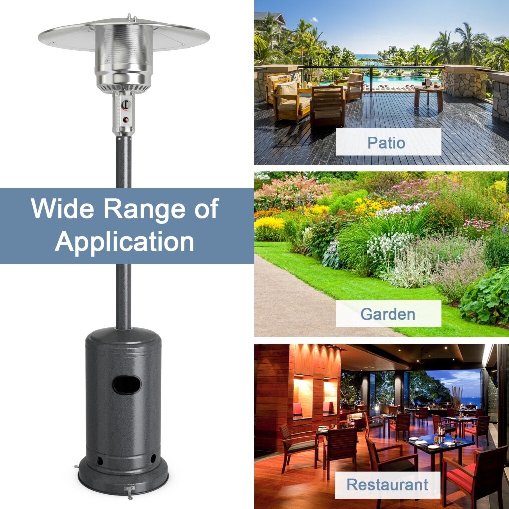 ● Widely Used:  This steel standing patio heater, which could be used to warm your patio, deck or pool area up for your outdoor activities in minutes, convenient and easy to use.