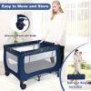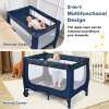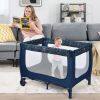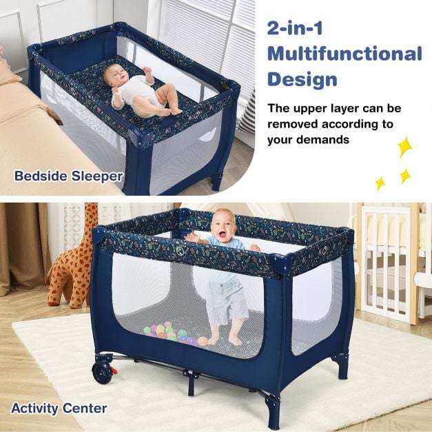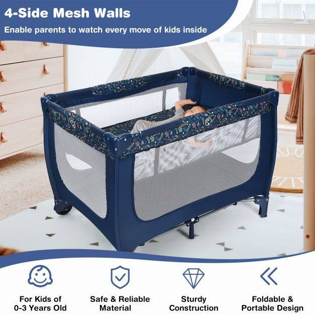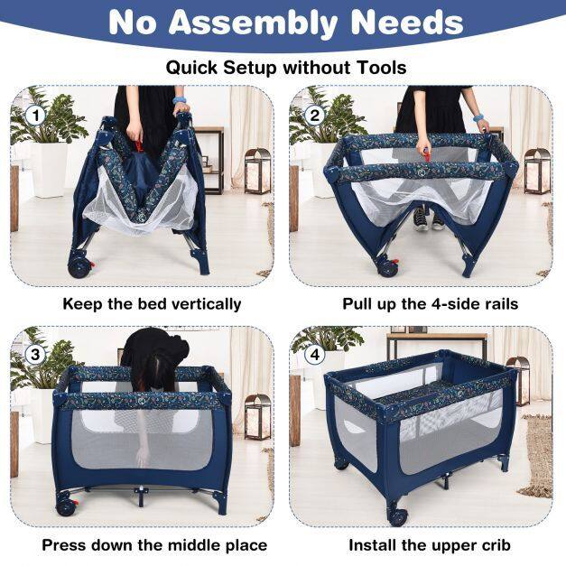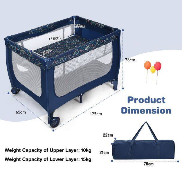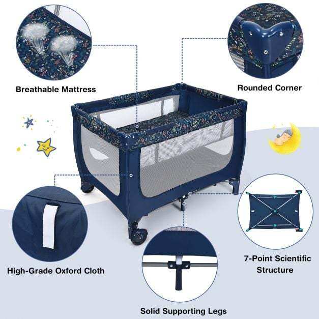 Coming with a detachable bassinet and comfortable mattress, this baby crib combines baby activity center and baby bassinet bed, meeting your different needs. Also, the baby playpen is designed with 2 rolling wheels with brakes, allowing you to move it from room to room easily. The mesh cloth not only ensures air circulation in the baby playpen, but also provides better observation for parents. Made of stable steel frame, the baby playpen is capable for long time use. Following detailed instructions, the installation is easy and quick. Most importantly, you can fold it quickly for convenient storage and carrying.