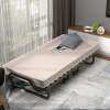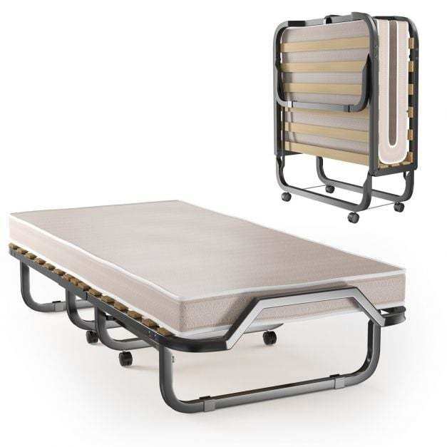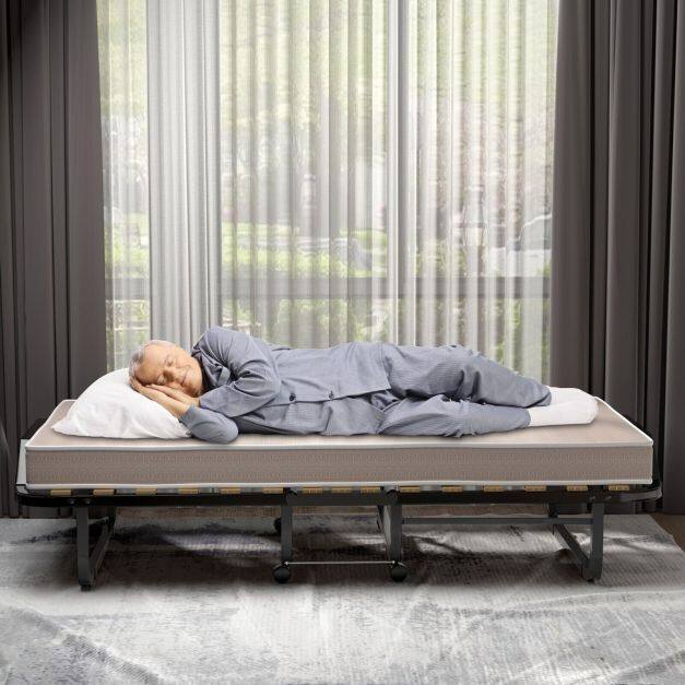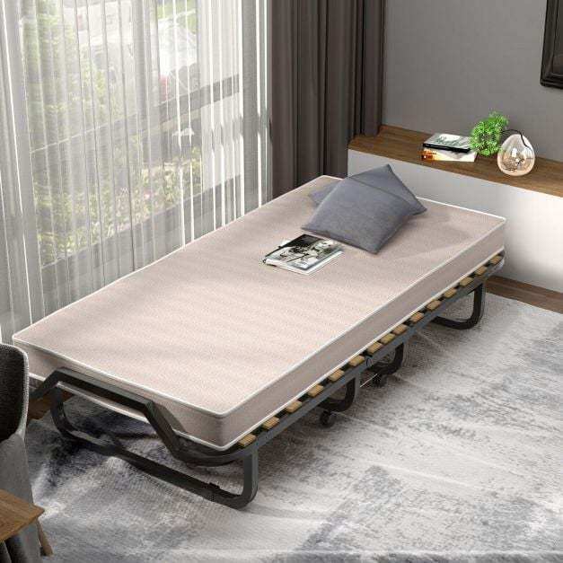 Are you worrying that there is no extra bed for visitors? The folding bed with mattress can meet your needs. The mattress is filled with selected and highly elastic memory foam to provide you and your guests with a comfortable sleeping experience. And its fireproof material makes the mattress safe for usage. The single folding bed is supported by upgraded metal frame with delicate to ensure maximum sturdiness and durability. It can hold up to 110kg without shaking. What's more, it only takes up a small room when you fold it up. Equipped with 360° wheels and convenient handles, this compact folding guest bed allows you to create a space for overnight guests. It is perfect for the living room, bedroom and more.