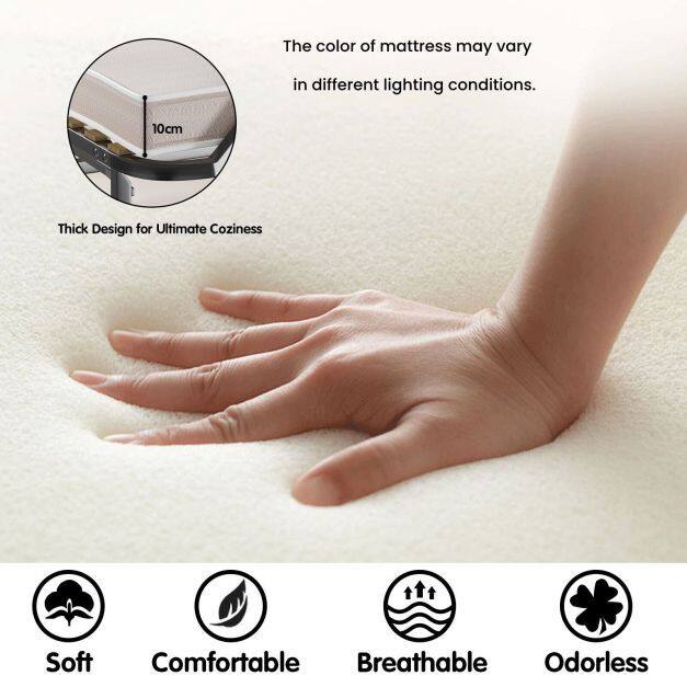 Memory Foam Mattress for Luxurious Comfort: Made from super-soft, high-density, and thickened memory foam, the 10cm memory foam mattress is comfortable and soft to sit on. Also, it can perfectly fit your body curve, which helps you relieve your physical fatigue and pain after long hours of work. Note: The color of mattress may vary due to light avoidance and light exposure.