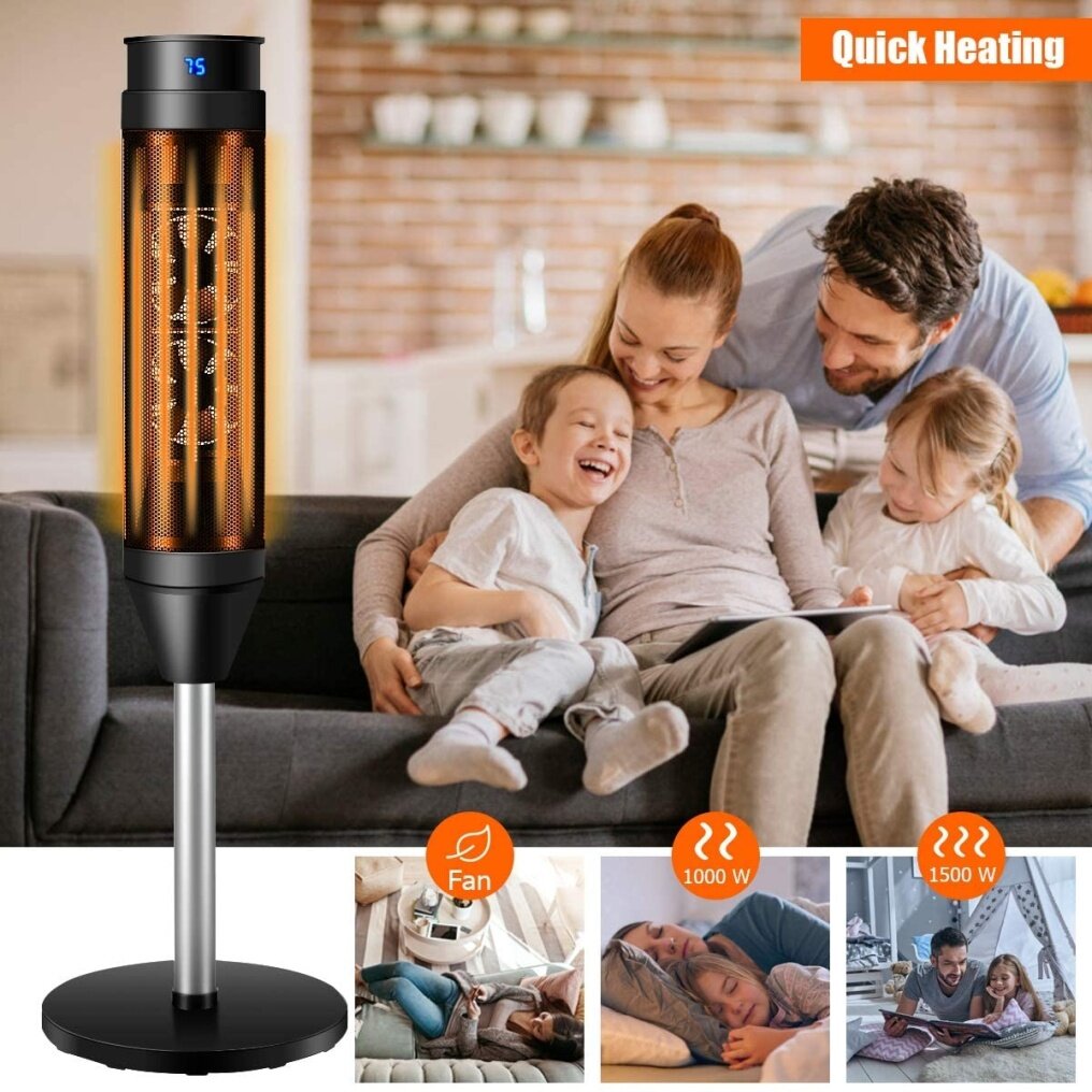 It can stay warm and comfortable in nearly any space. It offers a space-efficient design that can evenly warm most rooms, thanks to the elevated design and wide-area oscillation. This heater has an adjustable digital thermostat with heat settings. In addition, it offers quiet operation. It has a sleek metallic appearance and looks good in any room of your house or office. A digital display makes it easy to operate.