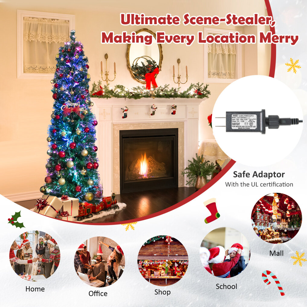 5/6/7/8 FT Pre-Lit Christmas Pencil Tree with Colorful Fiber Optics Green-6 ft Sourcing Wholesale Supplier/Distributor | B2B Marketplace