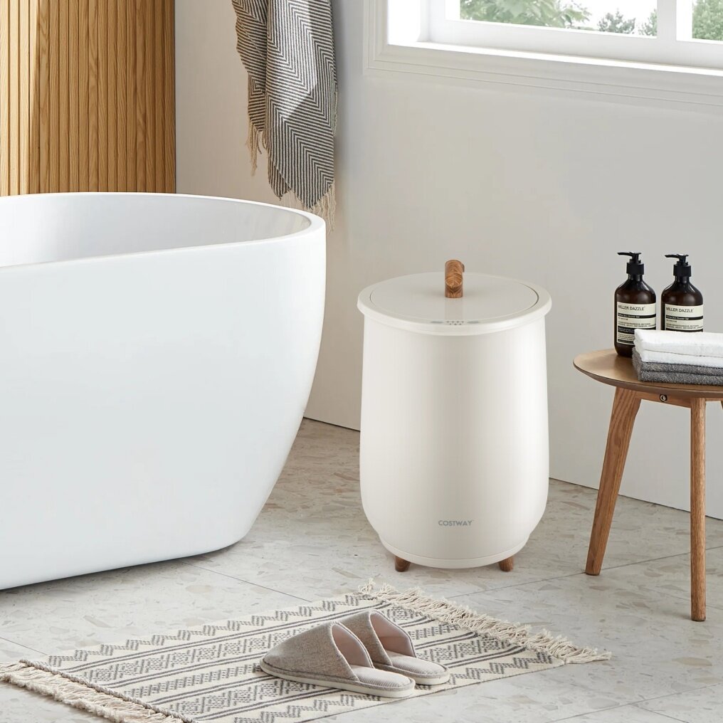 ● Compact Design and Stable Base: This compact, portable and lightweight towel warmer bucket can fit any small space and is easy to move and carry. What's more, 3 supporting legs with anti-slip foot pads can keep the towel warmer and stable anytime and anywhere.