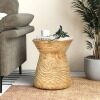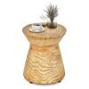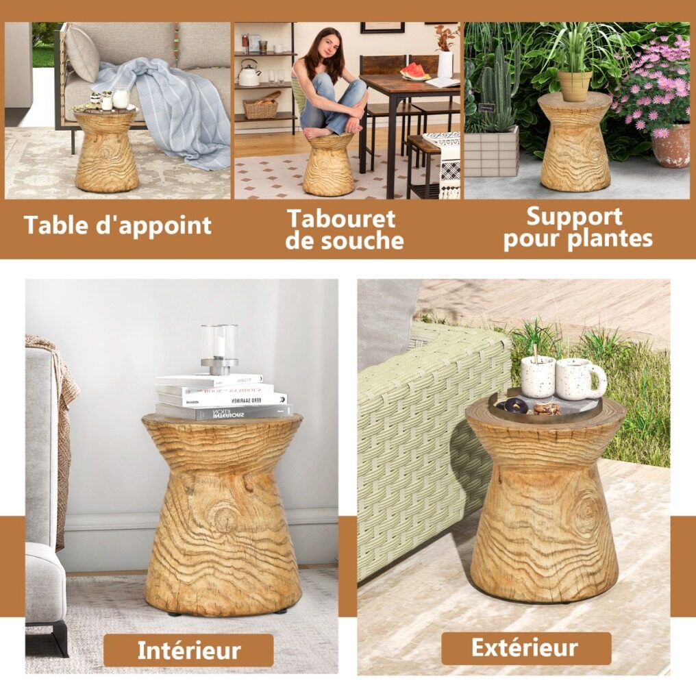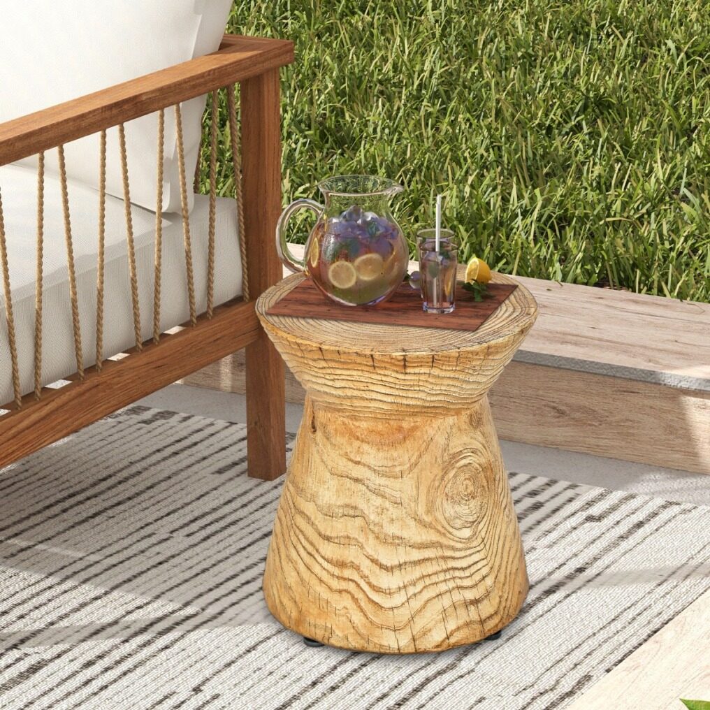 ● Stylish Hourglass Shape: This outdoor side table combines stylish hourglass shape appearance with a unique faux stump design, adding a natural and charming touch to your living room or patio. Its hourglass shape adds a distinct and sophisticated look to your outdoor space, making it a focal point of conversation.