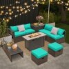 9 Pieces Outdoor Patio Furniture Set with 42 Inch Propane Fire Pit Table-Turquoise Sourcing Wholesale Supplier/Distributor | B2B Marketplace