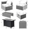 ● More Storage Space: Apart from putting the items on the tempered glass tabletop and the top of the storage box, the fire pit table is suitable for storing items as well. All you need to do is cover the lid. If you want to keep some items out of sight, just put them in the storage box and ottoman.