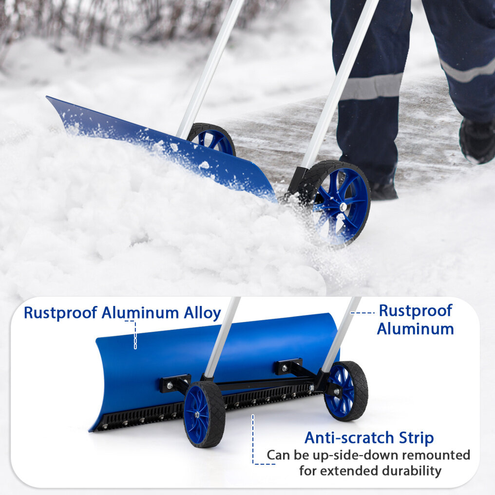 ● Built for Durability: Crafted with rustproof aluminum poles and a long-lasting aluminum alloy blade, this rolling snow shovel withstands outdoor conditions, providing you with a reliable snow-clearing tool year after year.