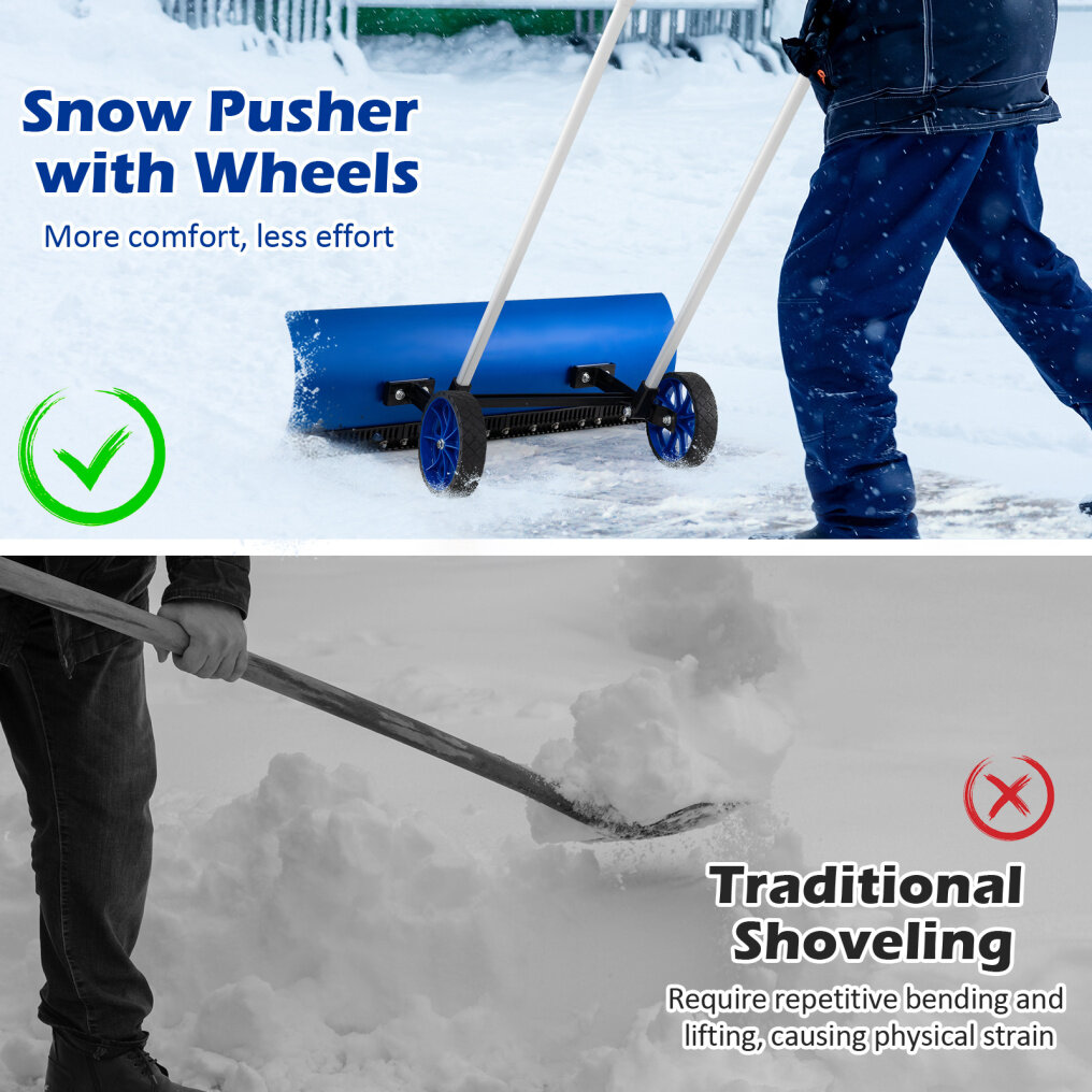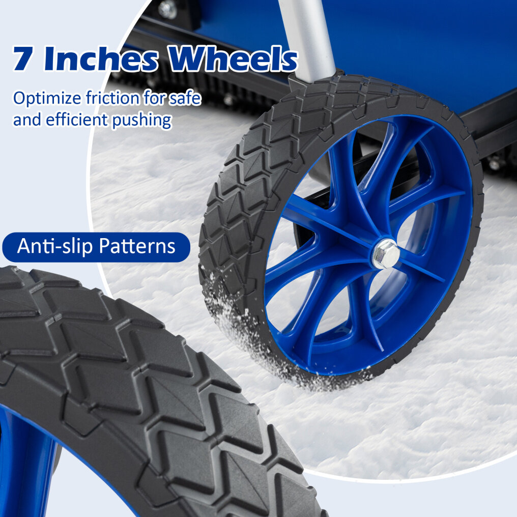 ● Smooth Maneuverability: Equipped with 7" anti-slip and wear-resistant wheels, this snow pusher shovel is simple to maneuver through doorways, sidewalks and driveways without slipping or getting stuck.