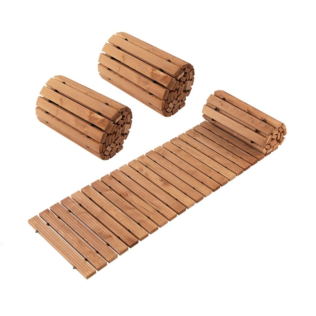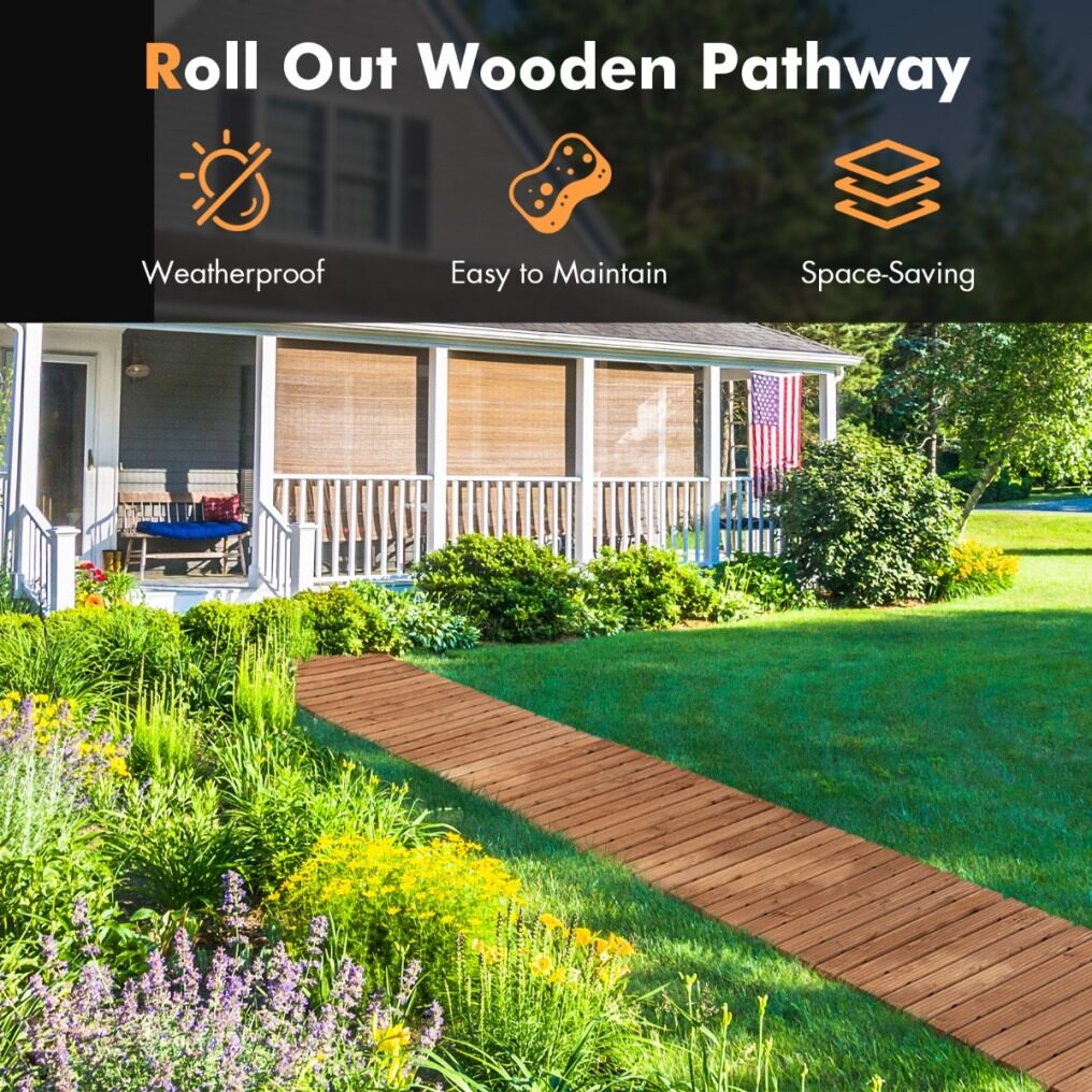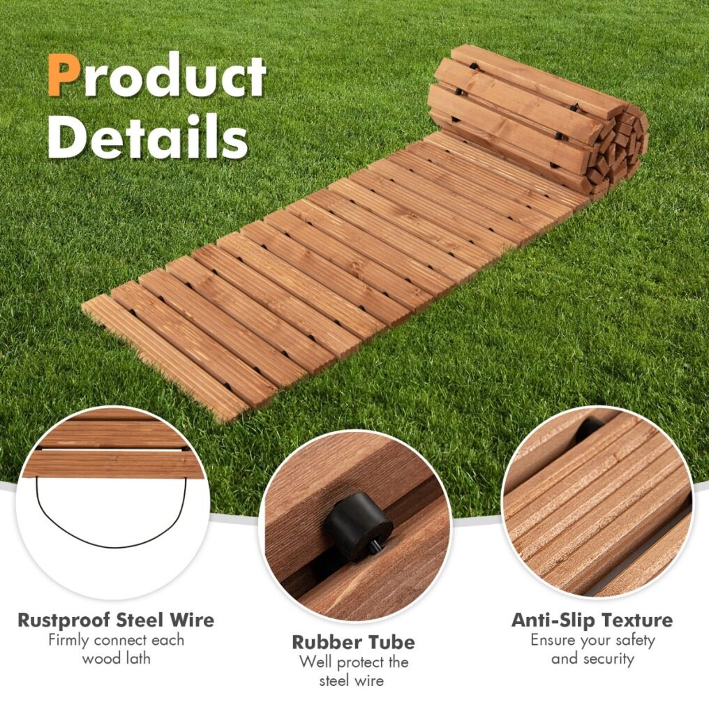 Convenient Roll-up Design: When not in use, the wooden pathway can be quickly rolled up into a much smaller size which won't take up too much space. Its compact folding size is space-saving for storage and convenient for carrying. You can store it either in the car trunk or the corner of your room.