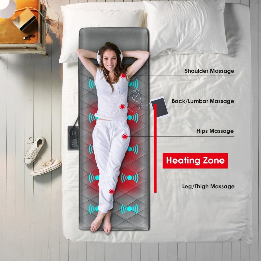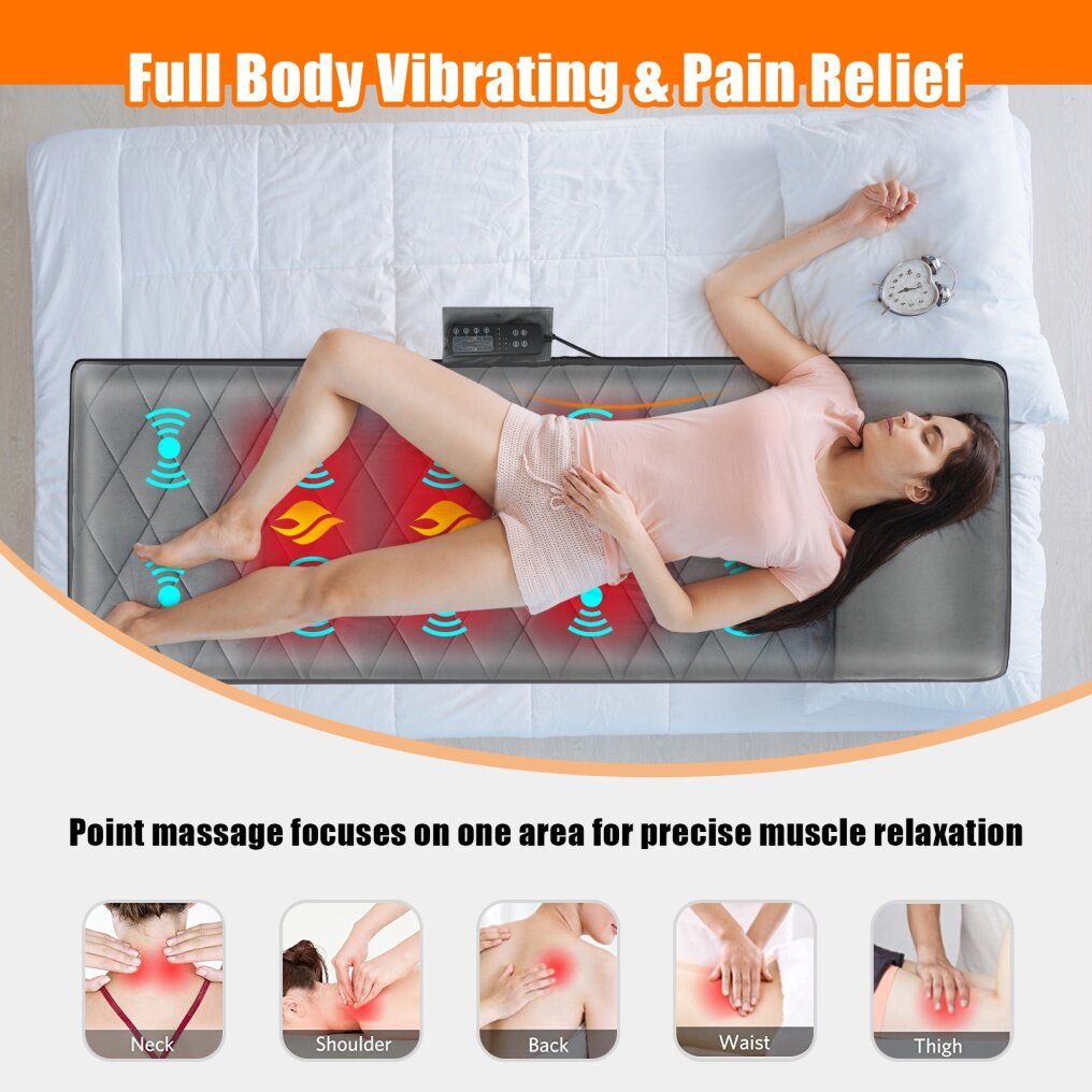 ● Full Body Massage Mat: The vibration therapy pad features 10 vibration motors, 5 vibration modes, 4 selection areas, and 3 intensity levels to provide you with customized comfort. These energetic kneading shiatsu massagers work together to perform the deep massage of precise acupoints of the body, relax your tired muscles and relieve joint pain and spasms.