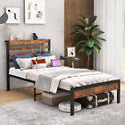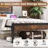 ● Stylish Industrial Headboard: Add a touch of rustic appeal to your bedroom with this industrial platform bed frame. The storage headboard with wood grain not only offers extra space, but also goes well with the sleek matte black frame that complements any decoration style.