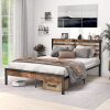 ● Stylish Industrial Headboard: Add a touch of rustic appeal to your bedroom with this industrial platform bed frame. The storage headboard with wood grain not only offers extra space, but also goes well with the sleek matte black frame that complements any decoration style.