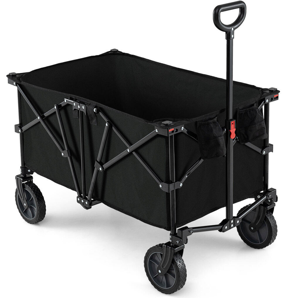 ● Massive Capacity: With an impressive 180 L capacity and 2 cup holders, this utility cart can carry sleeping bags, folding chairs, grocery bags, pet supplies, beach gears, beverages and snacks. It can hold everything for outdoor activities such as camping, shopping, or sports events.