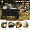 ● Ultra-Portable Design: Designed for portability, the wagon cart folds quickly using easy-release buttons. The convenient handle and zippered cover enhance your mobility and protect your belongings during transport.