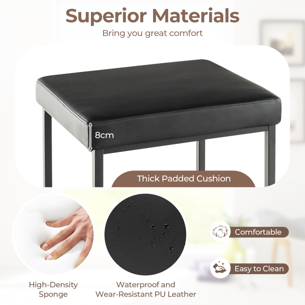 ● Bar Stools Set of 2: With the barstools set of 2, you are able to enjoy leisure time with the one(s) you love. Whether in the living room, dining room or other rooms, they are a perfect addition. Furthermore, the backless bar-height chairs can be stashed under the table or counter easily.