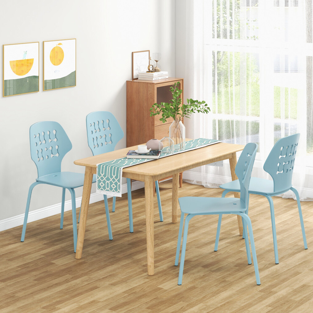 ● Enhanced Comfort: The dining chair set of 4 boasts ergonomic backrests that are not only extended for spacious leaning areas but also hollowed for better breathability. Plus, it features wide seats, distributing your hip pressure for better comfort.