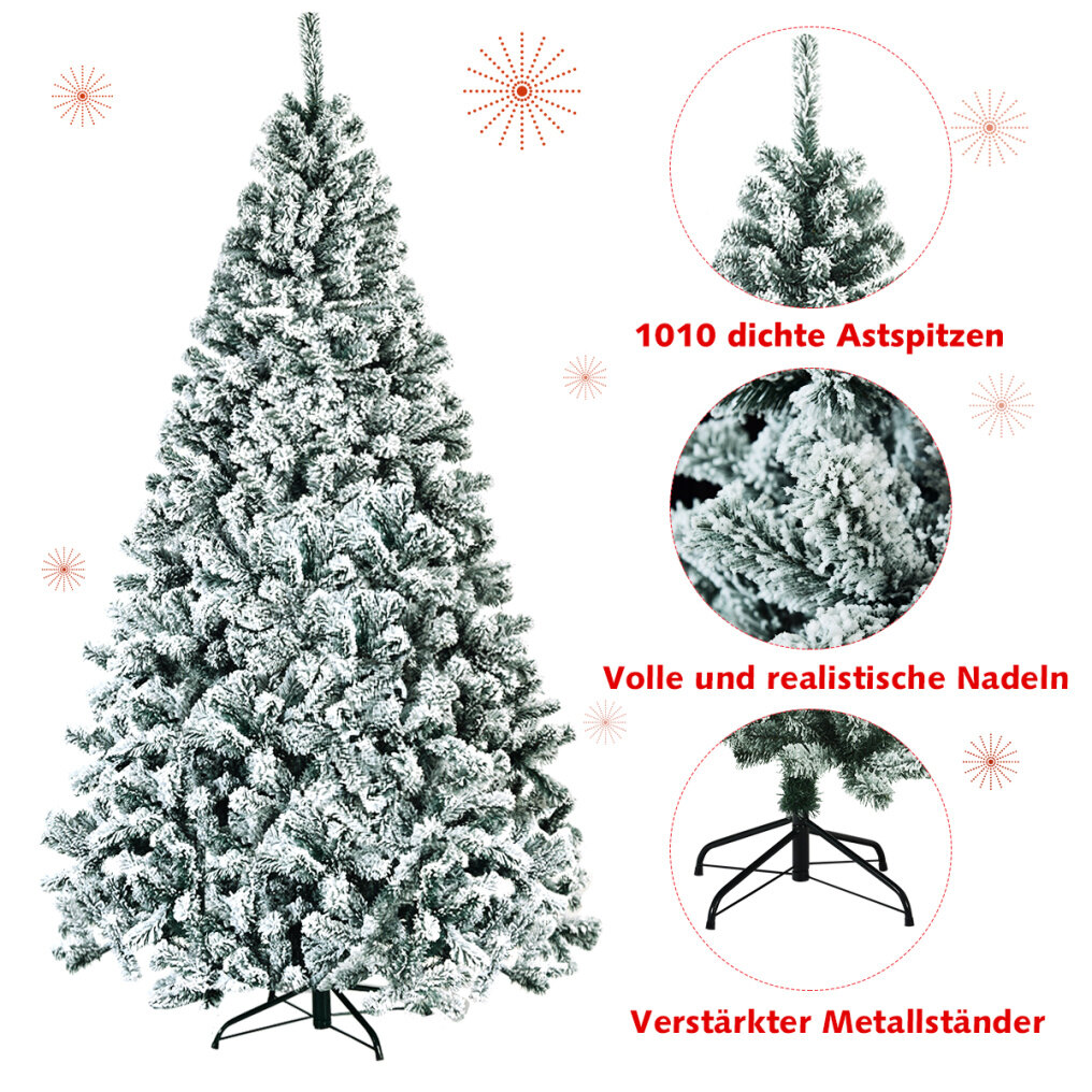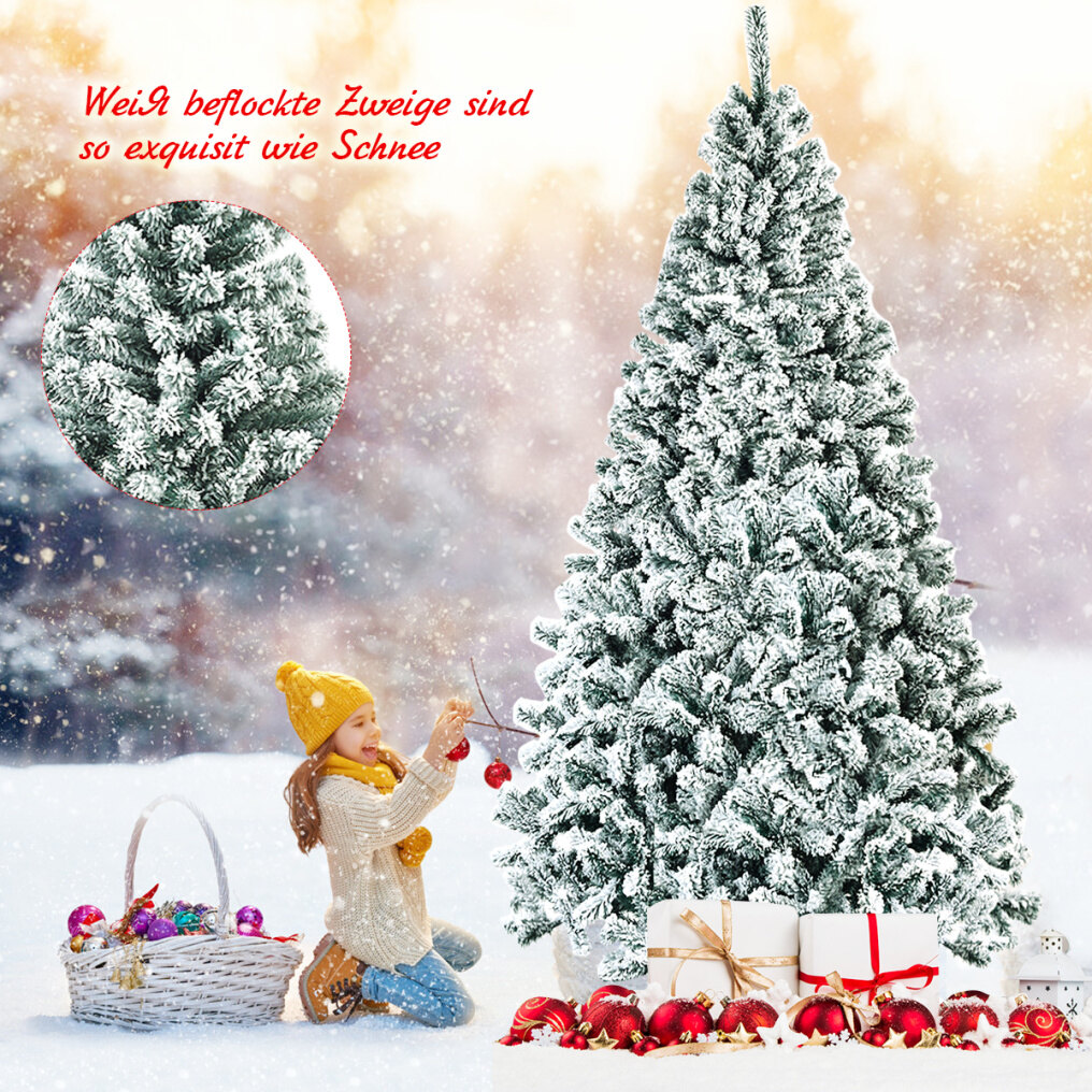 Everyone would share lots of happiness and laughter when they decorate this beautiful tree, and it would be an attractive decor for your fireplace, entryway, living room, or bedroom. The 600/1010 branch tips and staggered branches make the tree look more realistic and lush. And the snow-flocked covering makes the tree more attractive. Besides, the leaves are made of non-flammable PVC material, which is safe to use. And thanks to the hinged structure, you can set up the Xmas tree more easily and quickly. May the beauty and joy of Christmas remain with you throughout the new year! If you are looking for a Xmas tree like this, do not hesitate to place an order!