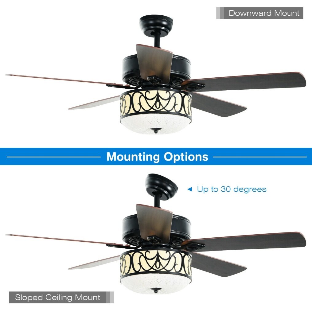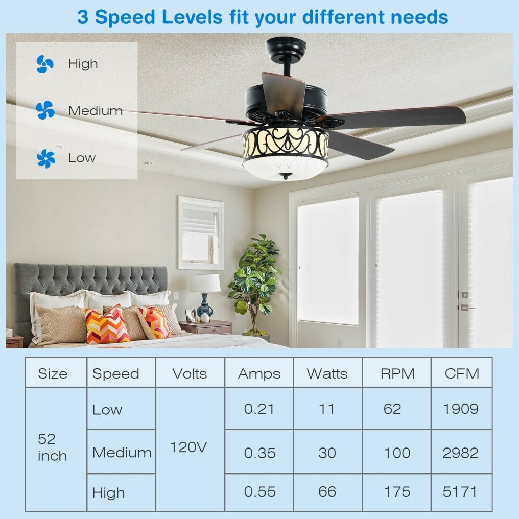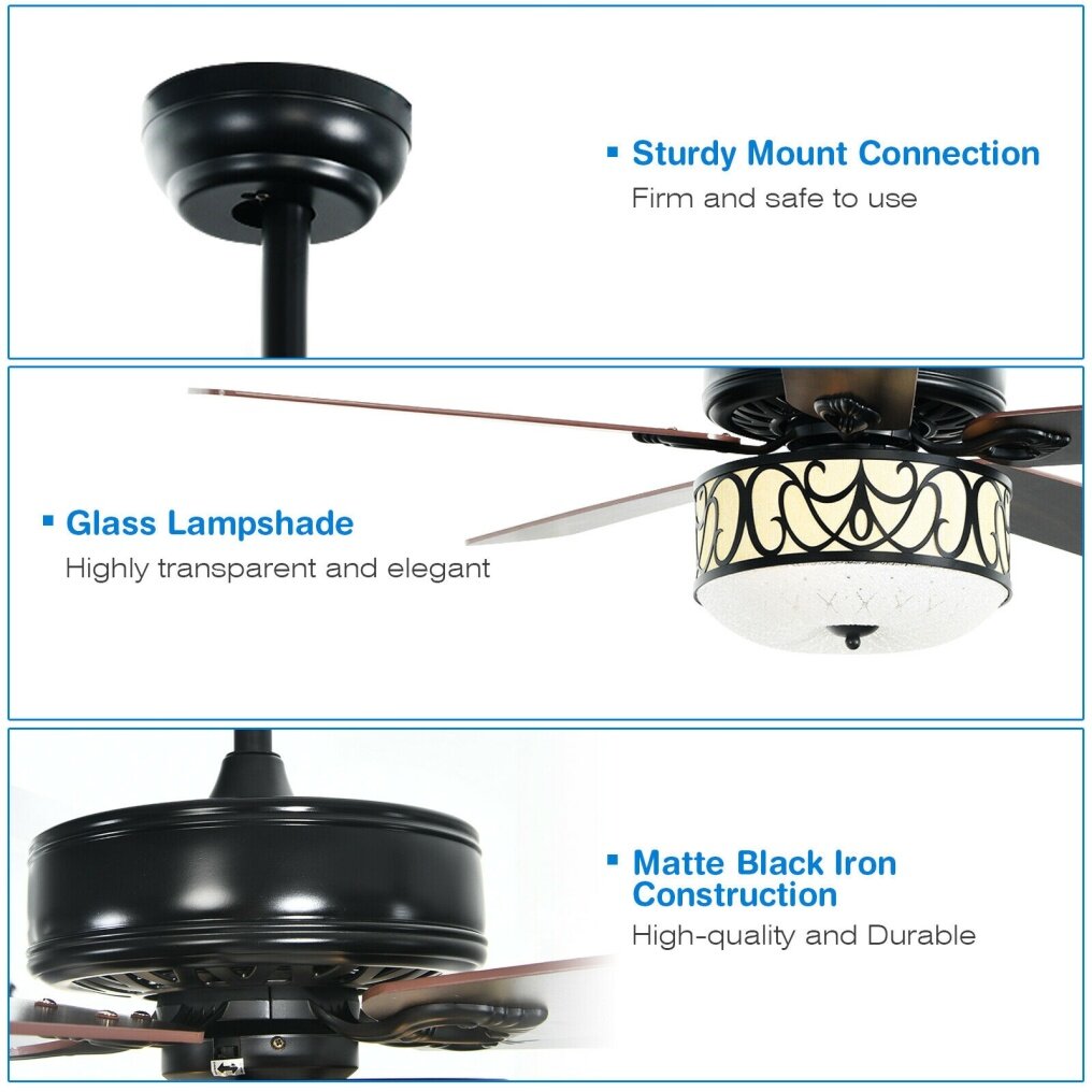 52 Inch Ceiling Fan with Light Reversible Blade and Adjustable Speed-Black