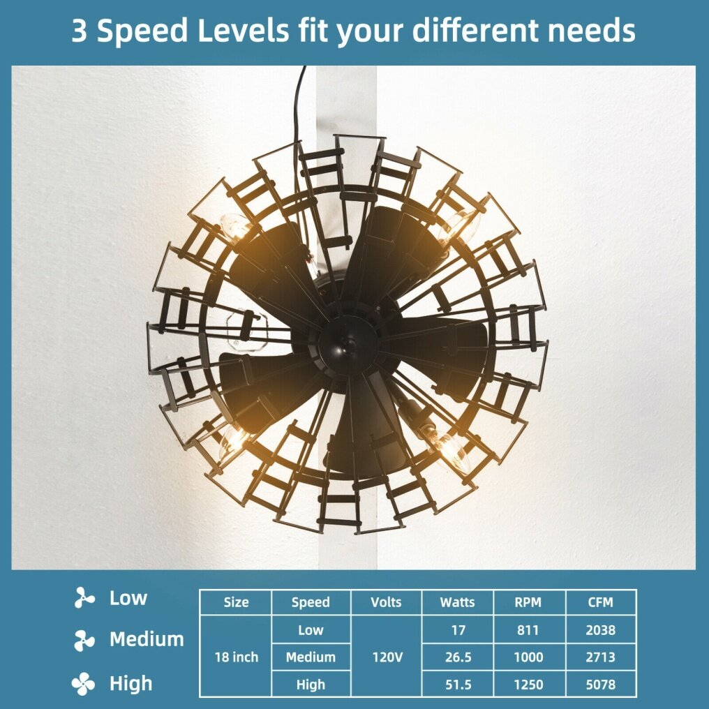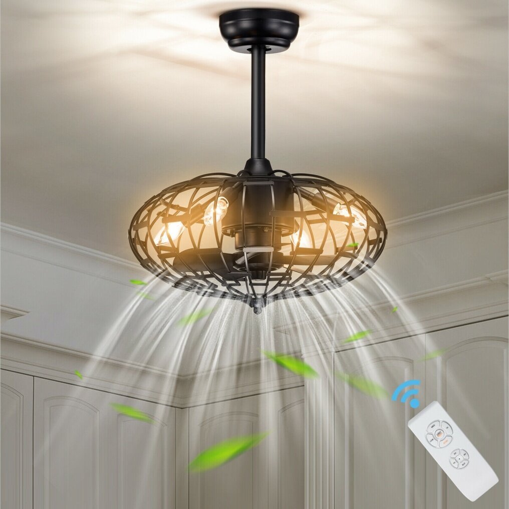 ● Caged Design and Industrial Style: The entire ceiling fan features a matte black appearance, making it modern and stylish and fitting any decor. The lampshade is crafted in a retro cage shape, which also adds elegance. It is suitable for hallway, corridor, etc.