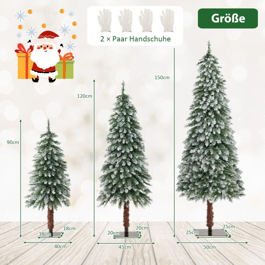 It contains 3 Christmas trees of different sizes (90cm/120cm/150cm high). Unleash your creativity and embark on a decorative journey of discovery by combining these sleek and versatile trees to breathe life and renewal into any space. Its special snow needles will take you back to precious memories of winter. With 129/231/369 branch tips and realistic trunks, each tree embodies the essence of nature and offers an enchanting and lifelike ambience. Watch the 50/100/150 energy saving LED lights dance, bathing your surroundings in a warm and enchanting glow. These trees are made of high quality PVC material, which is fireproof, anti-allergic and non-fading. The square metal stand ensures unshakable stability. By the way, the Christmas tree set is easy to assemble. Enjoy decorating with two pairs of gloves and protect your hands while transforming your space into a winter wonderland.