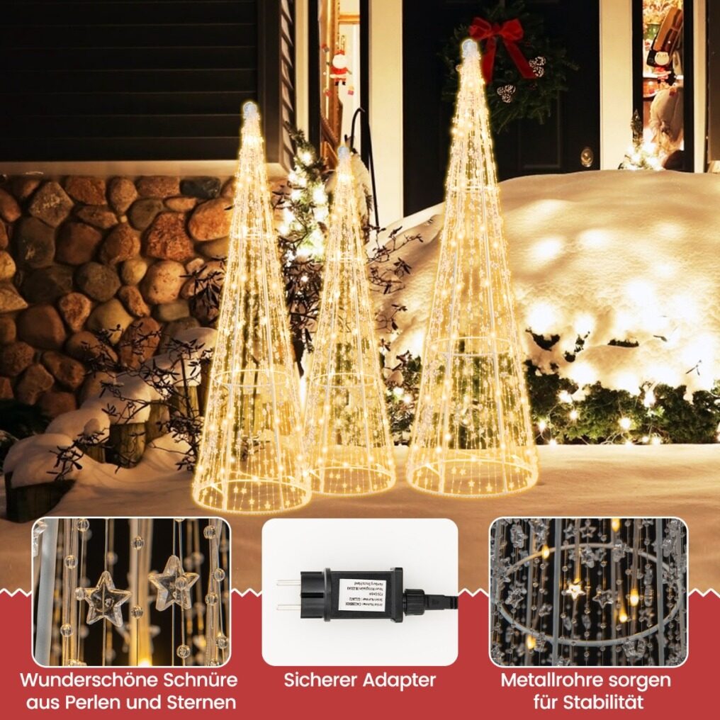 3-Piece Cone Tree Decoration: With our set of three cone trees in different sizes, you have the freedom to arrange them in different ways to suit your taste and style, creating a wonderful addition to your Christmas decorations. Whether in the house, in the garden or on the lawn, they will be the ultimate eye-catcher in your neighborhood or at your family celebration.