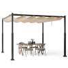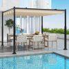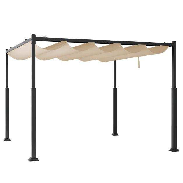 This 10 x 10 ft/310 x 310 cm outdoor pergola provides a 100 sq.ft/9.5 m2 large footprint, which is ideal for enjoying outdoor entertainment with your family and friends. Specially, it features a retractable canopy, creating an ideal level of shade and protection as weather conditions change. And it can be easily retracted by a convenient rope loop and securely locked in place with the magnetic locking system. Besides, the canopy is crafted of premium polyester fabric, offering reliable protection against the elements. Thanks to its thick supporting columns and 4 corner reinforced plates, this pavilion provides unparalleled durability and stability. With its unique and elegant appearance, it also adds a touch of charm and style to your outdoor living space.