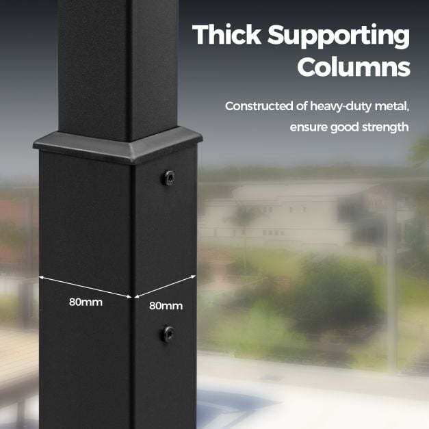 Reliable Construction: Supported by thick columns measuring 3.2" x 3.2"/80 x 80 mm (L x W), the patio pavilion provides a solid and reliable foundation for the entire structure. Additionally, constructed of heavy-duty metal, it also offers exceptional durability for long-term outdoor use.