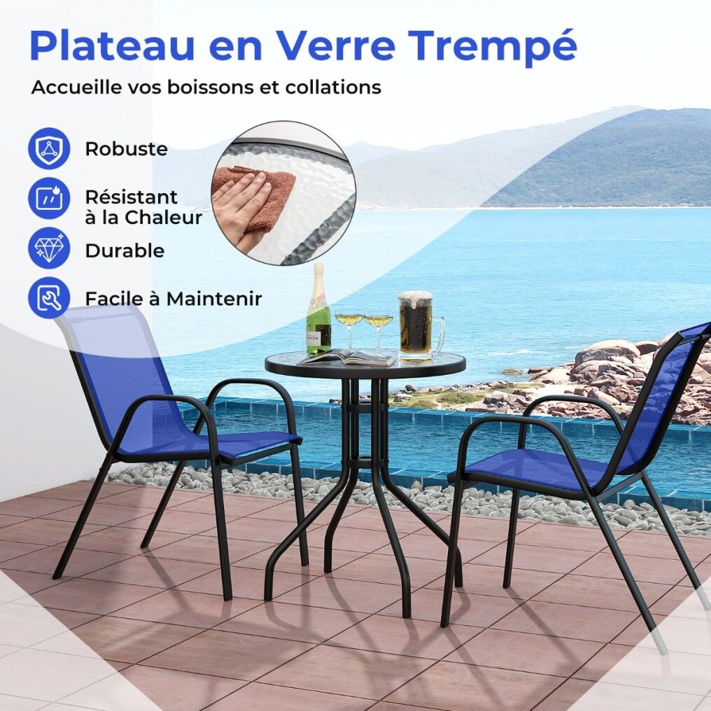 【Tempered Glass Top】The bistro table features a stylish tempered glass top, a symbol of strength and lasting quality. This heat-resistant surface is not only stylish but also easy to maintain, making it an ideal choice for outdoor environments.