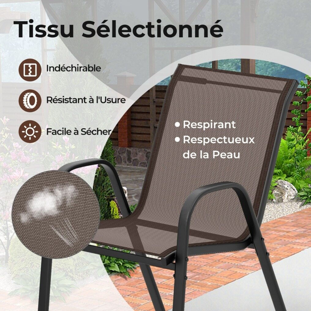 【Comfort and Durability】These patio chairs allow you to enjoy optimal comfort thanks to the ergonomic backrests and supportive armrests. In addition, the selected fabric is not only tear and wear resistant, but also quick drying for outdoor use.