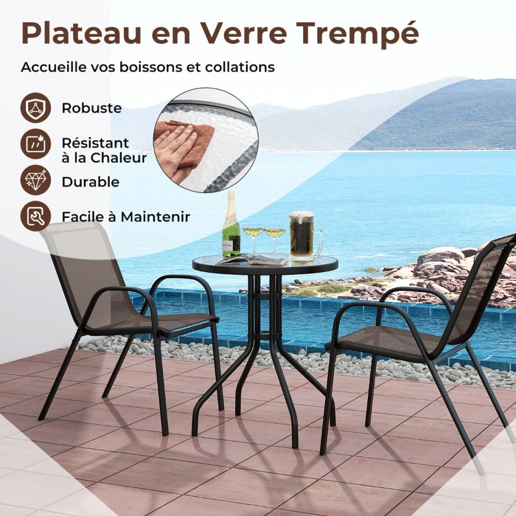 【Tempered Glass Top】The bistro table features a stylish tempered glass top, a symbol of strength and lasting quality. This heat-resistant surface is not only stylish but also easy to maintain, making it an ideal choice for outdoor environments.