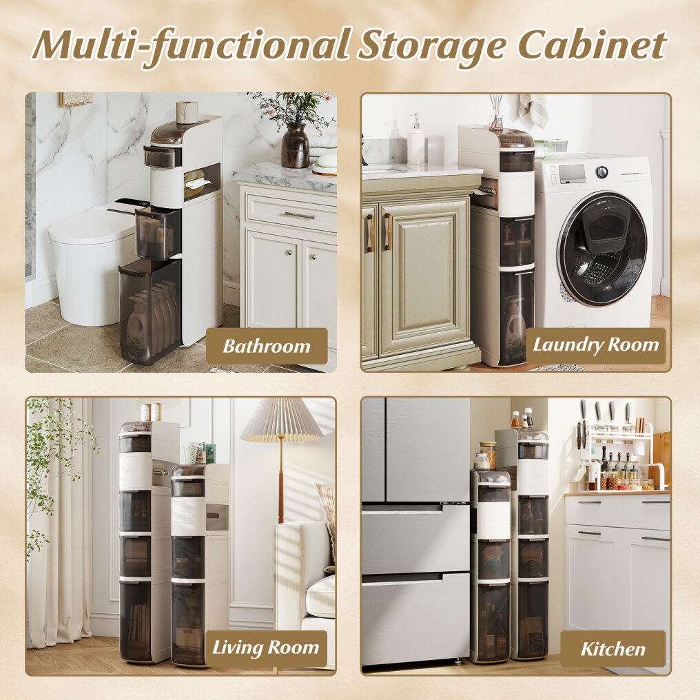 ● Compact Size for Small Spaces: This narrow bathroom storage cabinet is designed with a width of just 7", making it perfect for tight places. It maximizes vertical space without taking up much floor area, providing ample storage for your essentials.