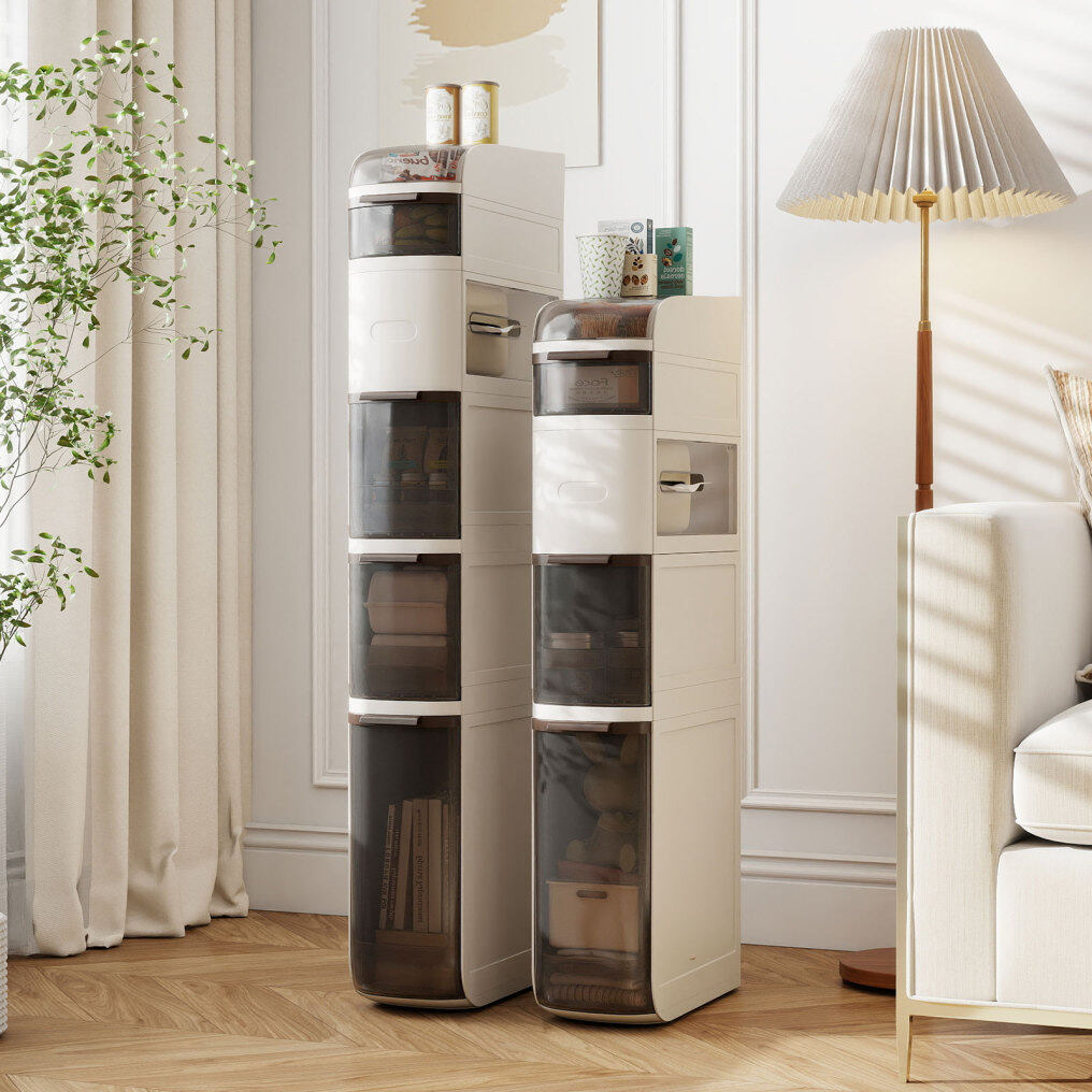 ● Freely Mobile for Convenience: Equipped with 4 smooth rolling wheels and a built-in handle on top, this storage cart allows for easy maneuverability. It can be moved with a simple push, offering flexibility to place it wherever needed.