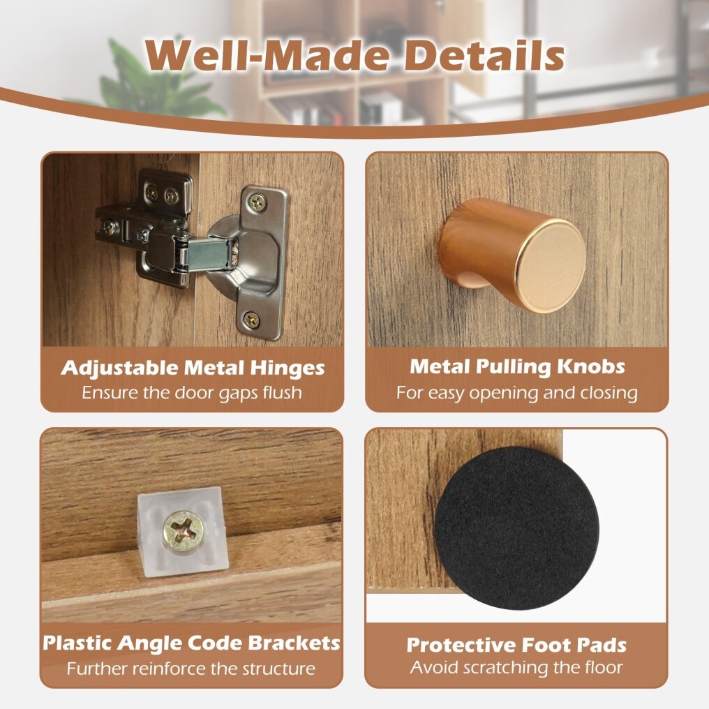 ● Convenient Access: The shelving storage organizer includes 2 open cubes for easy access to your favorite books. Additionally, the enclosed cabinets are equipped with adjustable metal hinges and metal knobs, allowing for smooth opening.