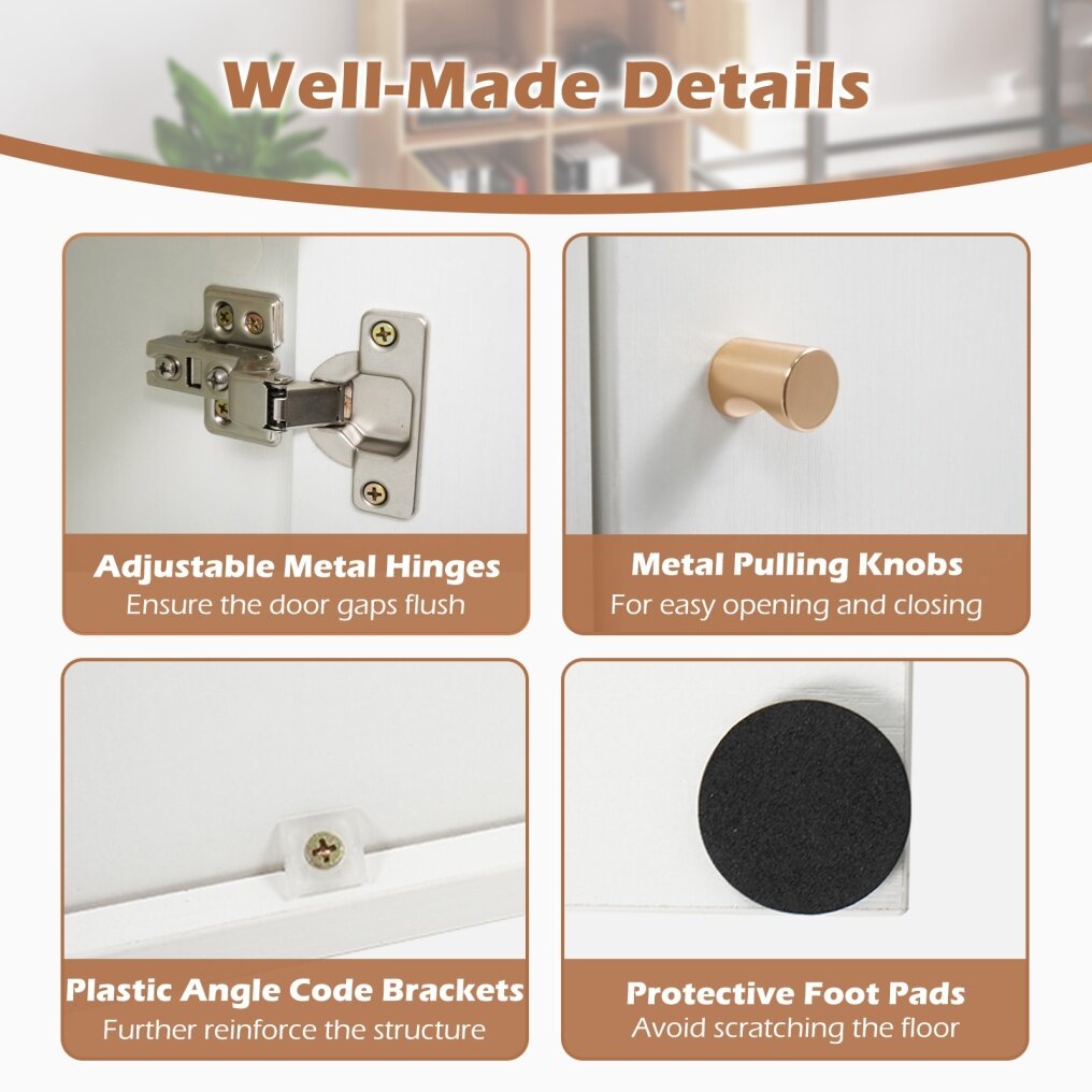 ● Convenient Access: The shelving storage organizer includes 2 open cubes for easy access to your favorite books. Additionally, the enclosed cabinets are equipped with adjustable metal hinges and metal knobs, allowing for smooth opening.