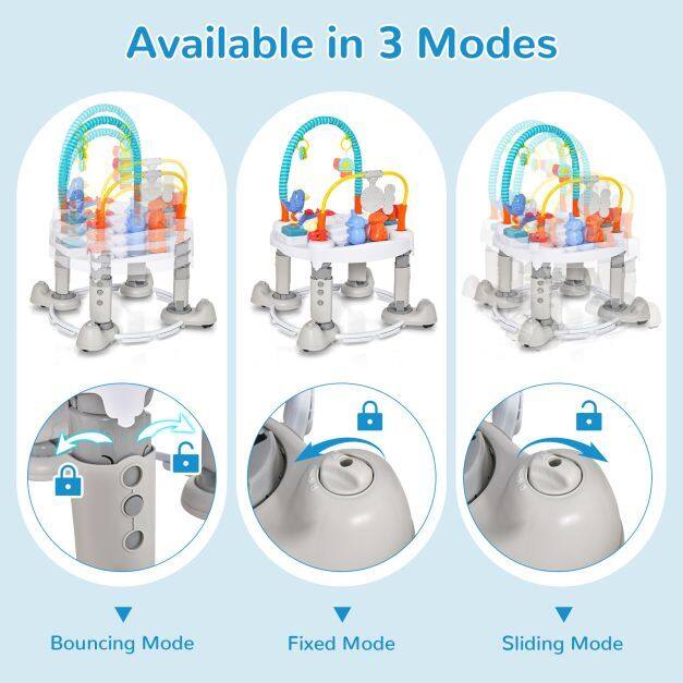 Walker or Bouncing Saucer: The 4-in-1 exersaucer has 4 lockable universal wheels. When unlocked, it turns into a walker. Sitting on the 360° seat, children can explore everything around them. When locked, it becomes a bouncing saucer, so O-legs can be avoided by strengthening kids’ leg muscles with proper jumping.